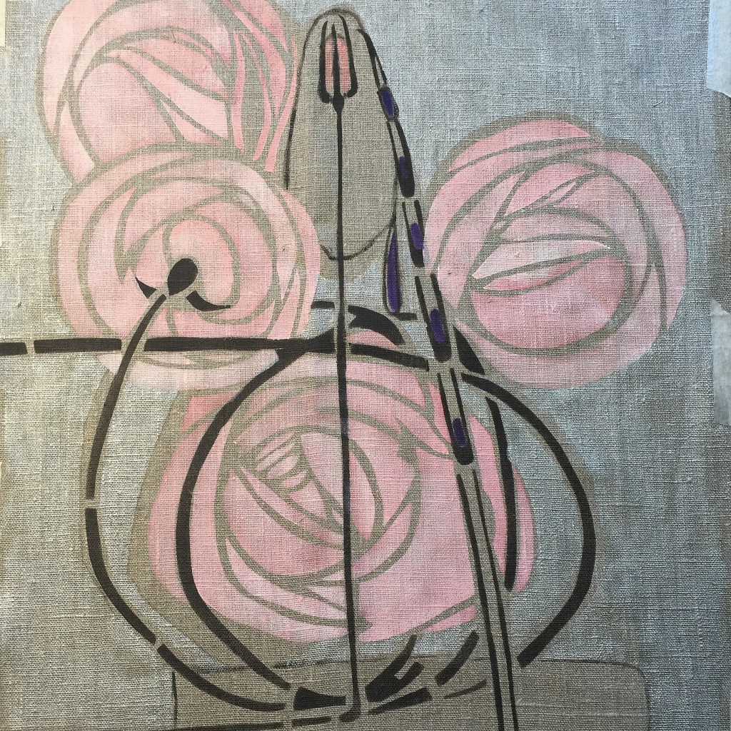 Her original training was in Decorative arts with Christie’s and the University of Glasgow. After graduating stencilling Mackintosh became her career. For 20 years she was involved in commissions with the Mackintosh community and was responsible for the recreation of The House for an Art Lover, the renovation of the Willow Tea rooms and some museum commissions.