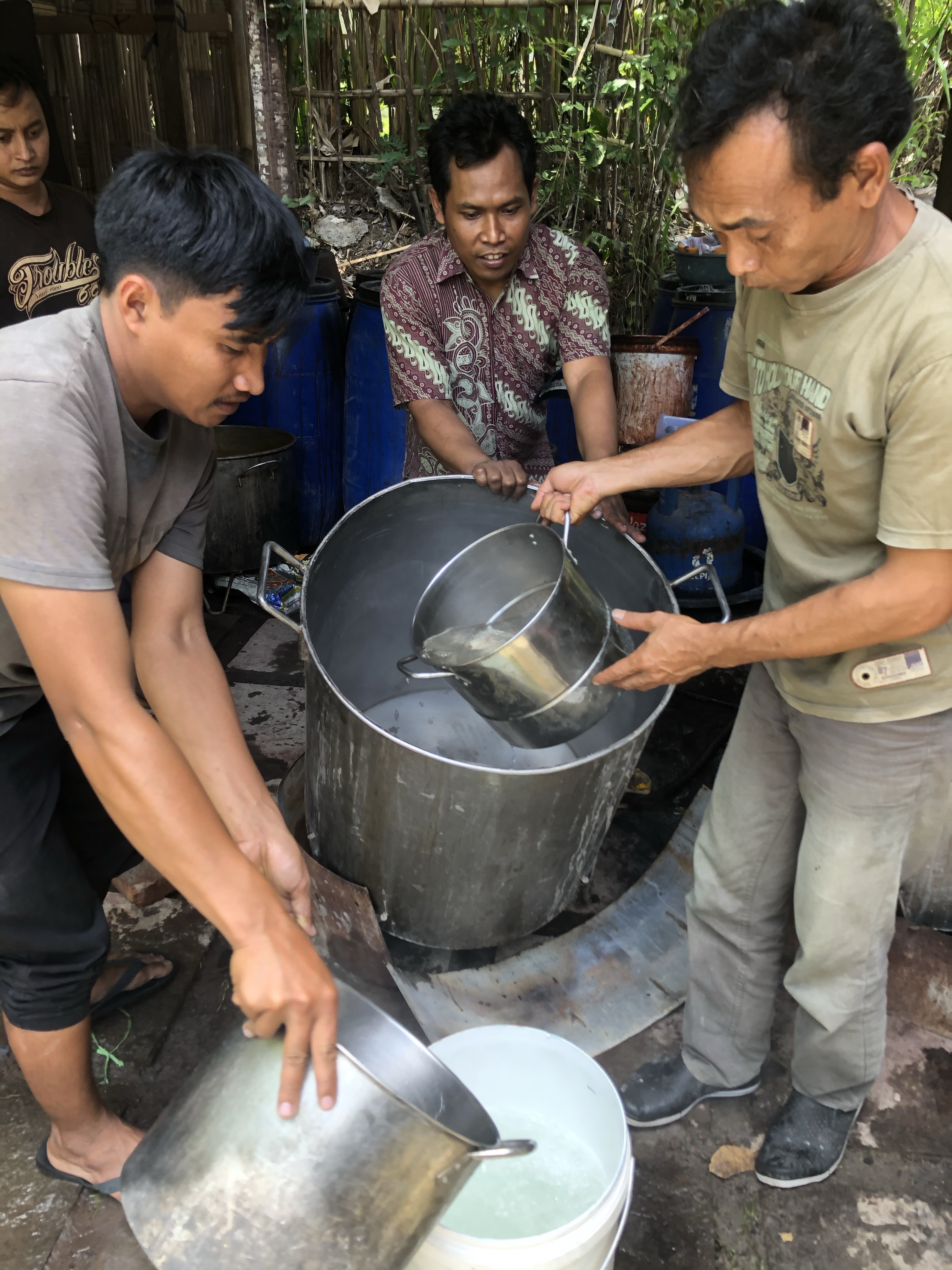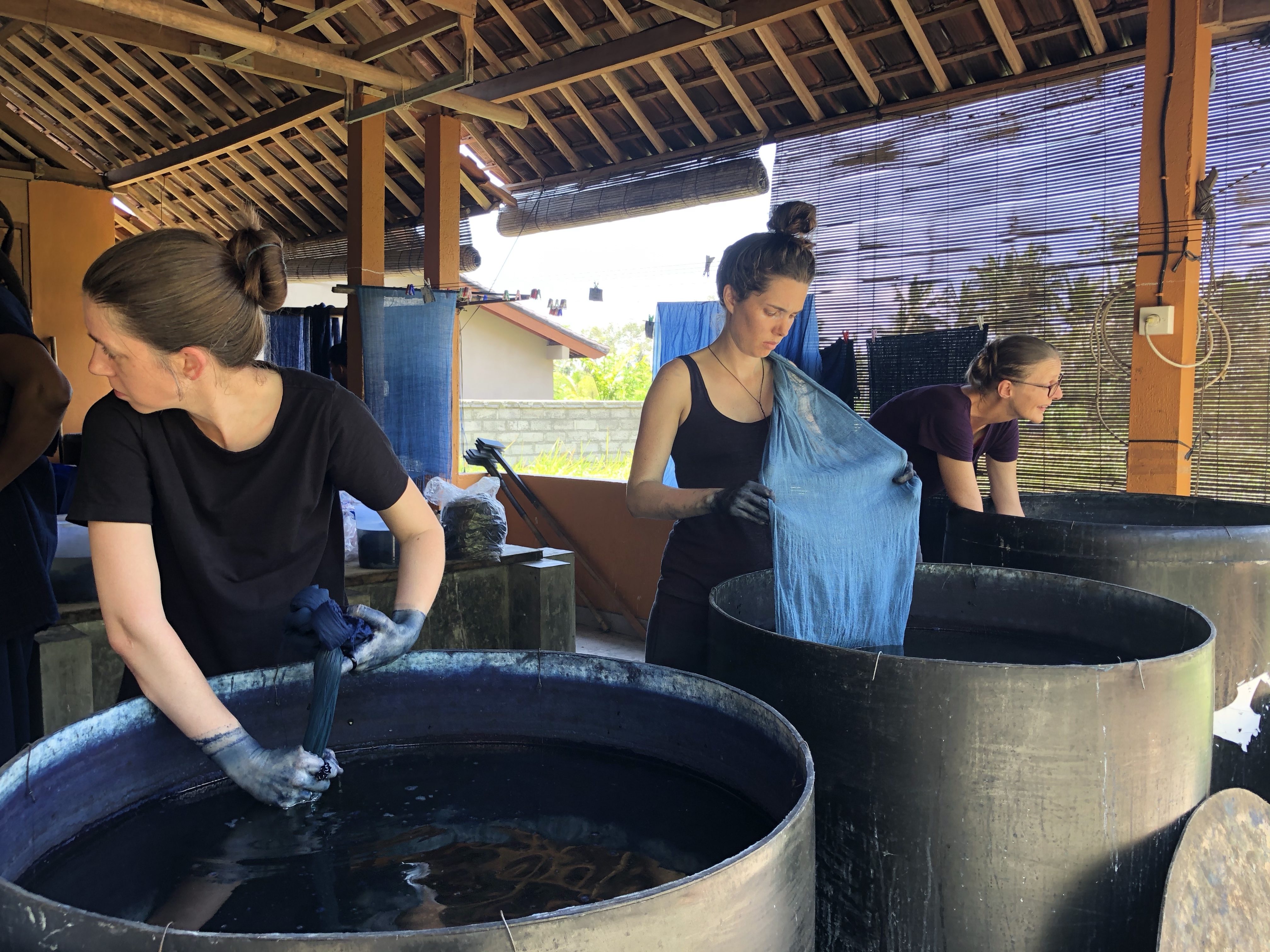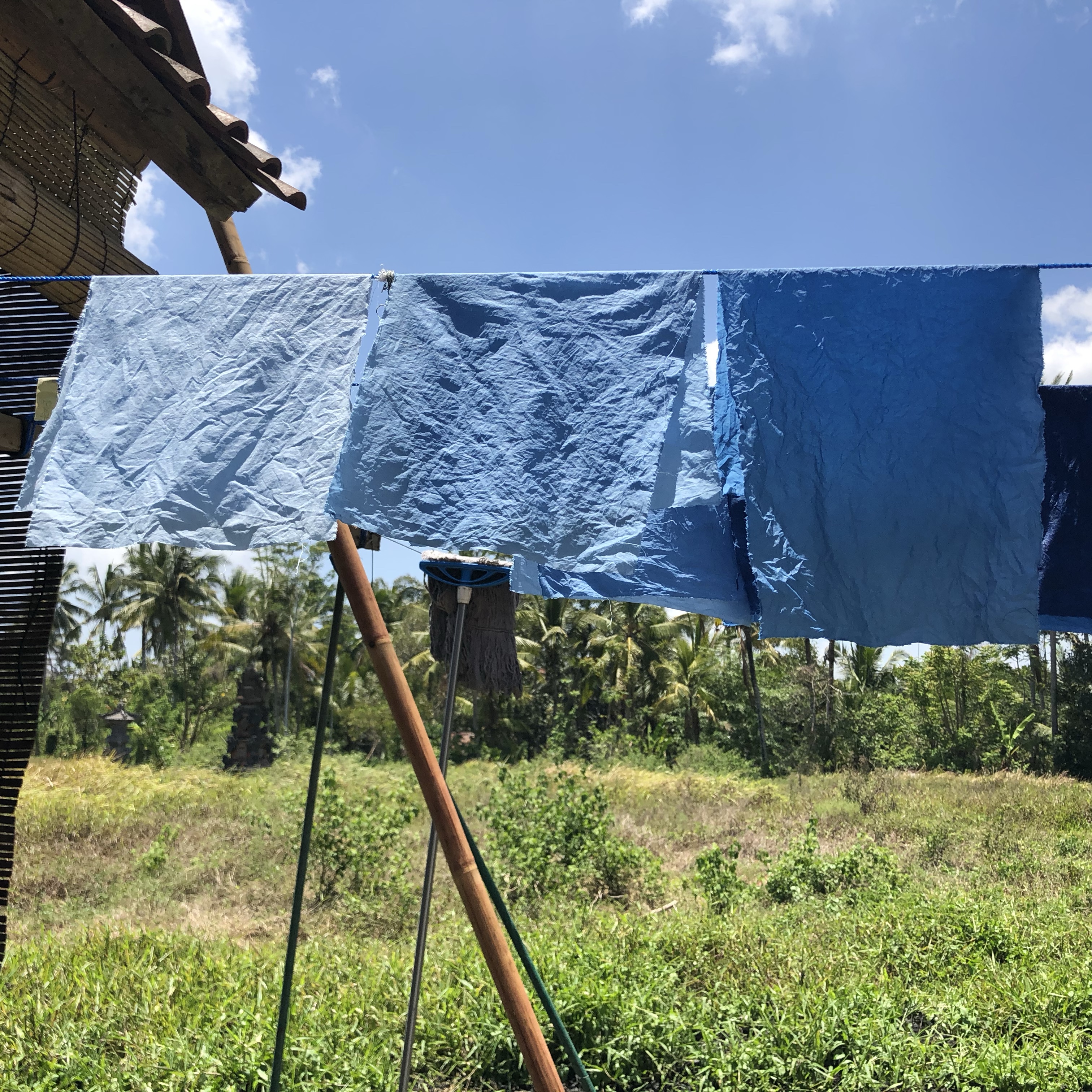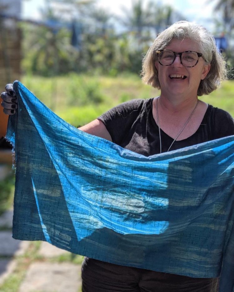 When at home, Elisabeth works in a sustainable manner in the circular economy, recycling cloth gathered from the local BnB and using leaves from her local park. When purchasing cloth and dyes she invest in community of weavers/dye producers who can benefit from her orders.