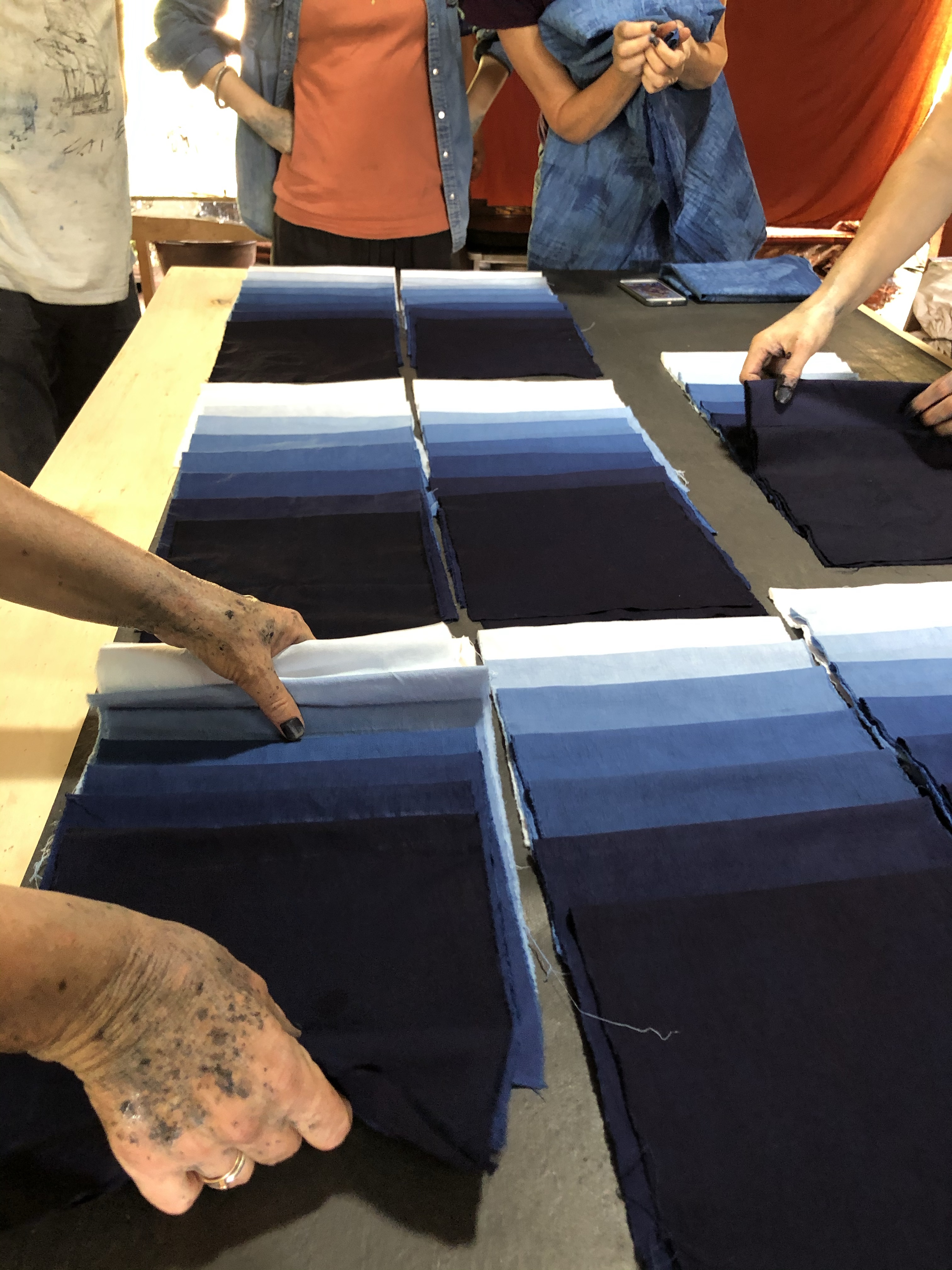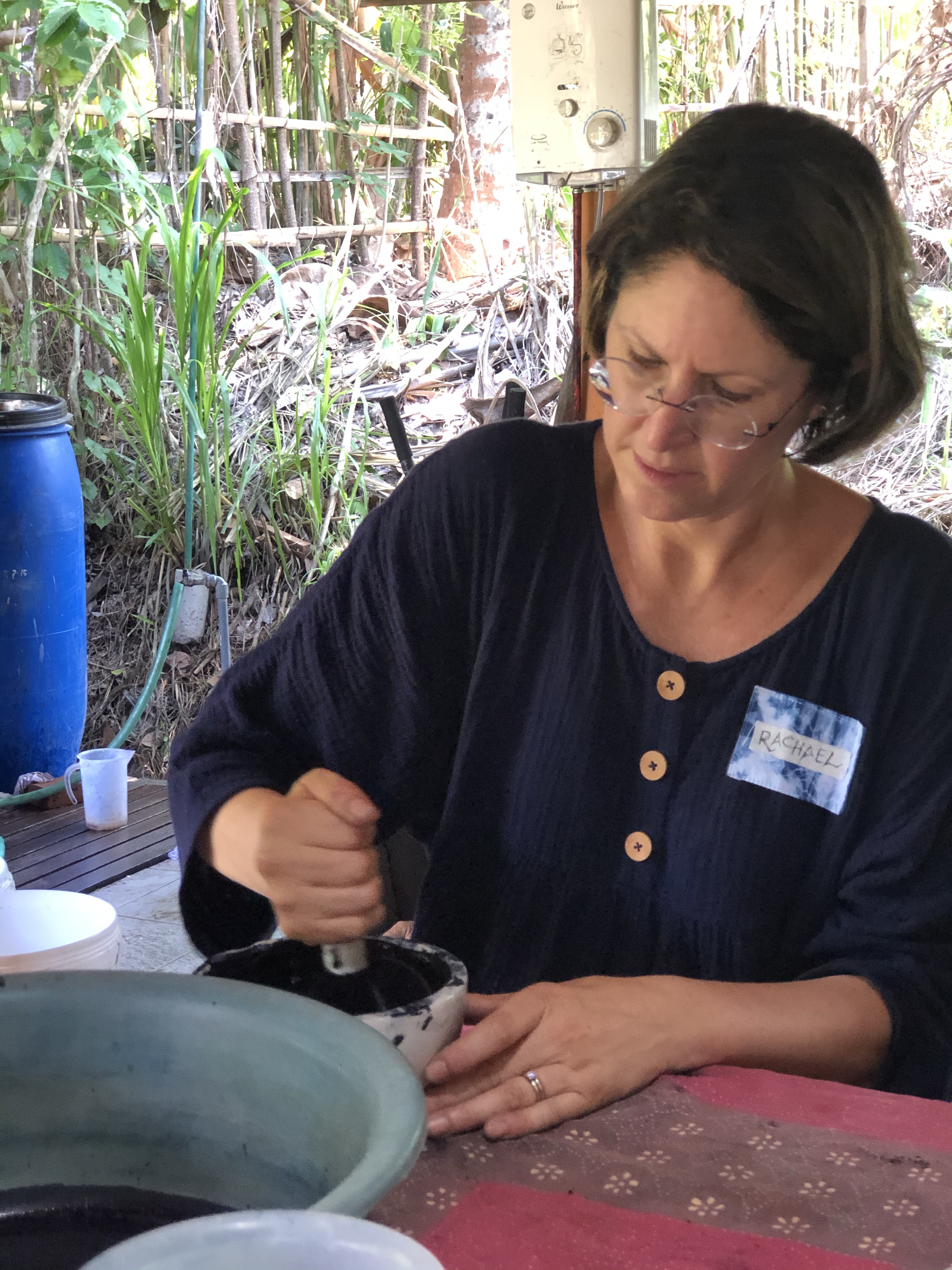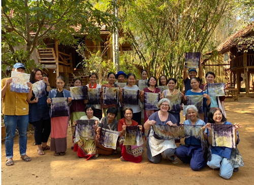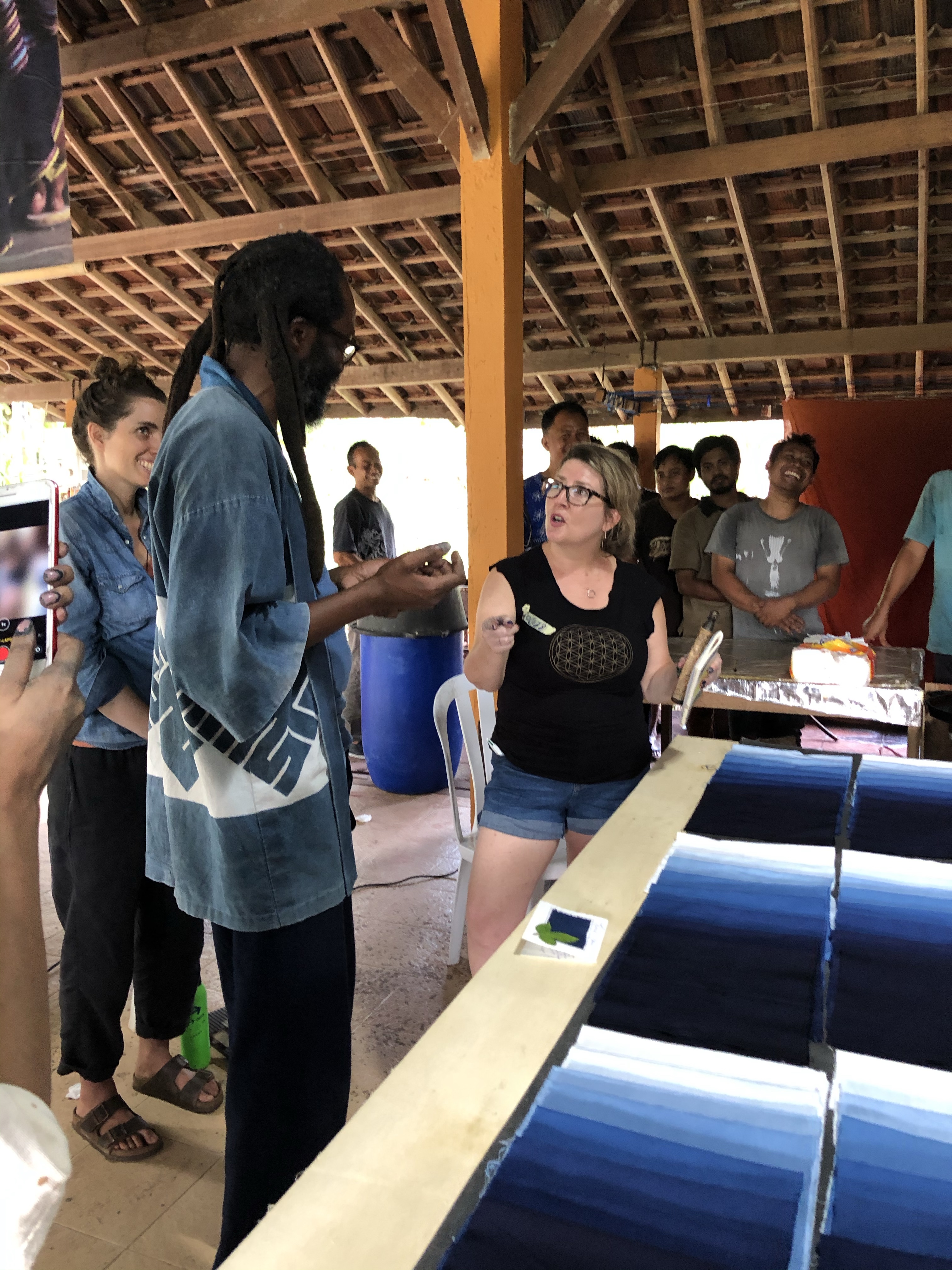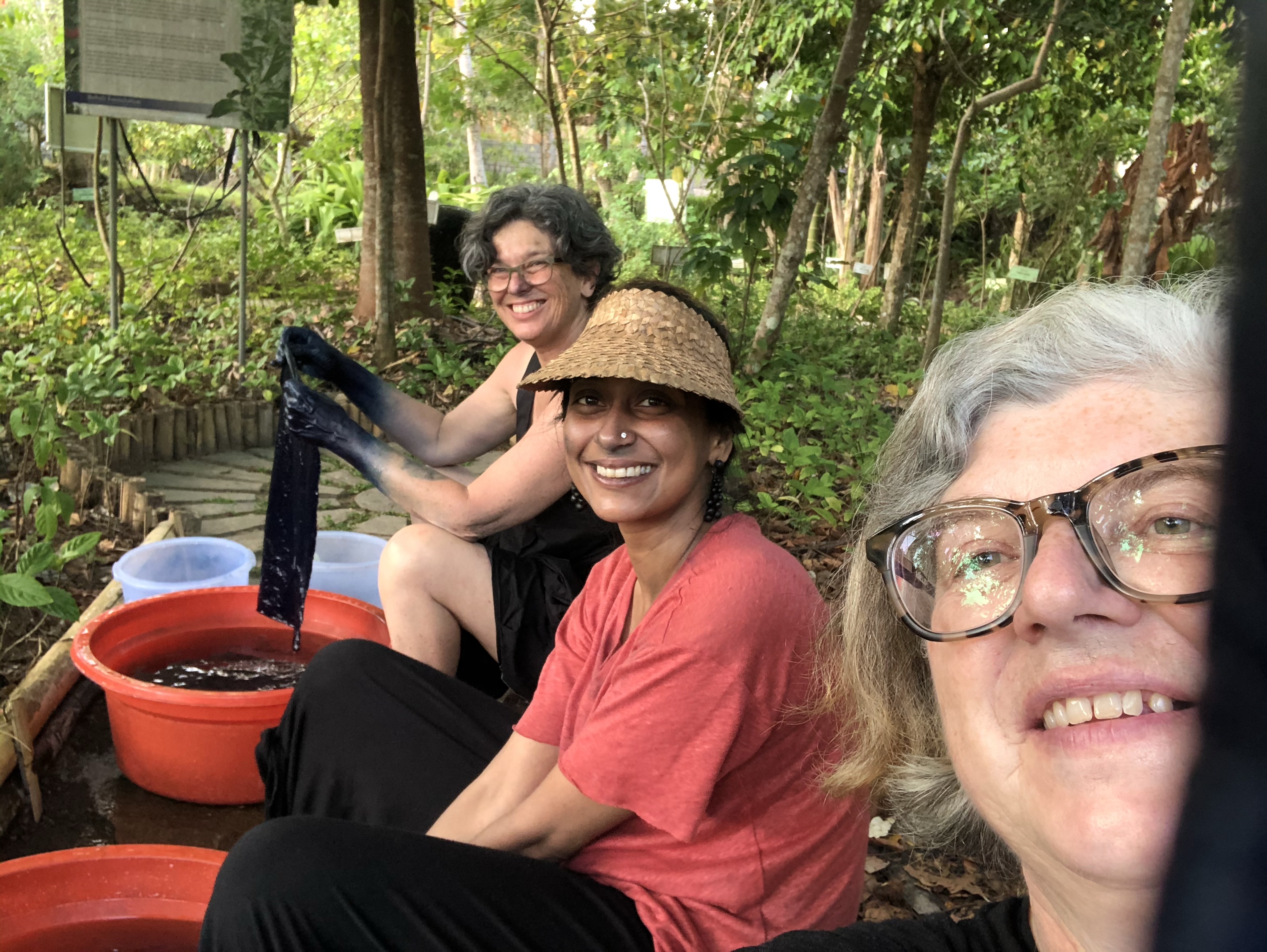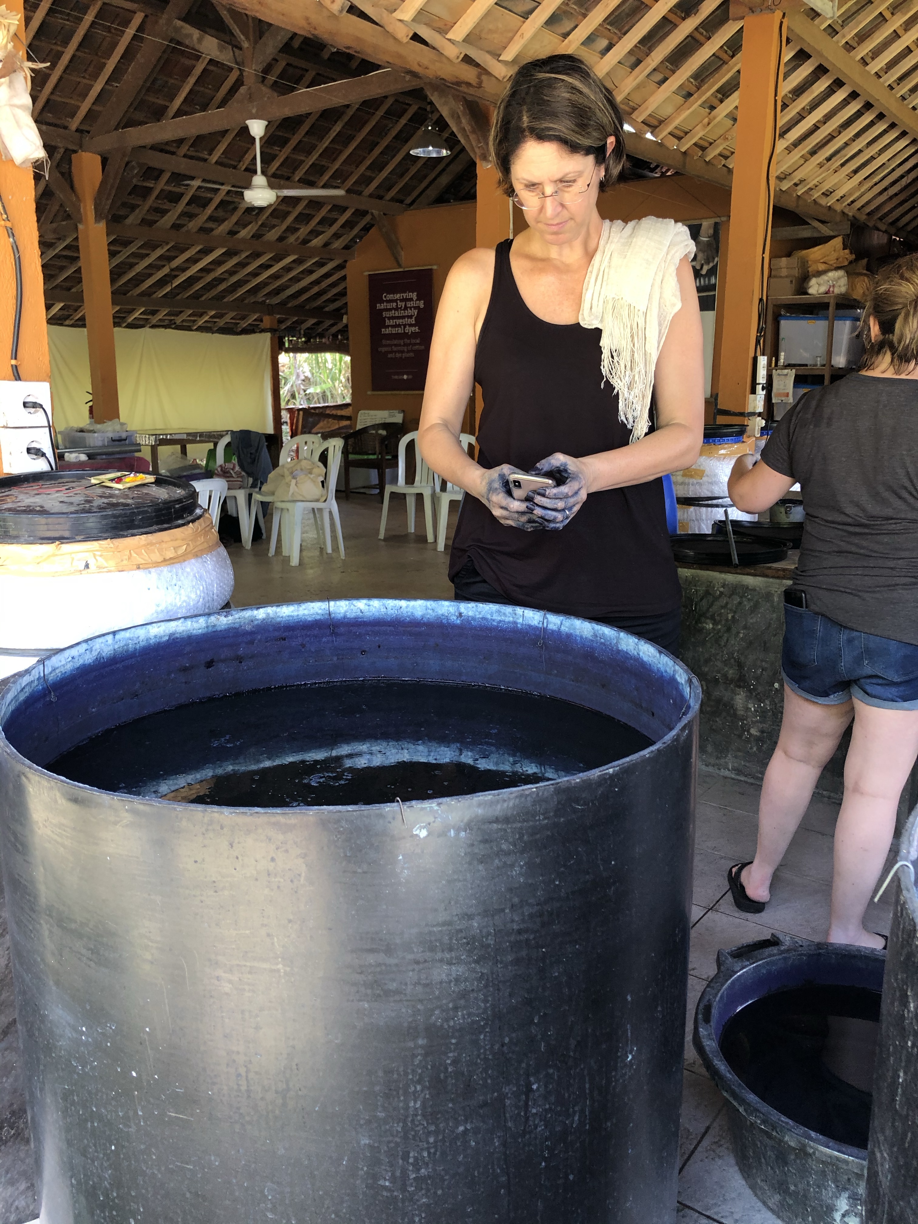 Inspired by her regular travelling in South East Asia since 1995 she gradually moved into the use of more Eco techniques like Indigo, natural dyes and Ecoprinting. She is self trained but also catches specialised workshops with specialist artists such as Aboubakar Fofana for Indigo, Irit Dullman for Ecoprinting as well as learning from local wisdom she finds around her. She organises skill swaps with other artist as she believe we only learn well from teachers we feel passionate about. In 2020 she organised a skill swap in Thailand sharing her Eco-printing methods with some community of dyers and textile artists agains some of their local knowledge.