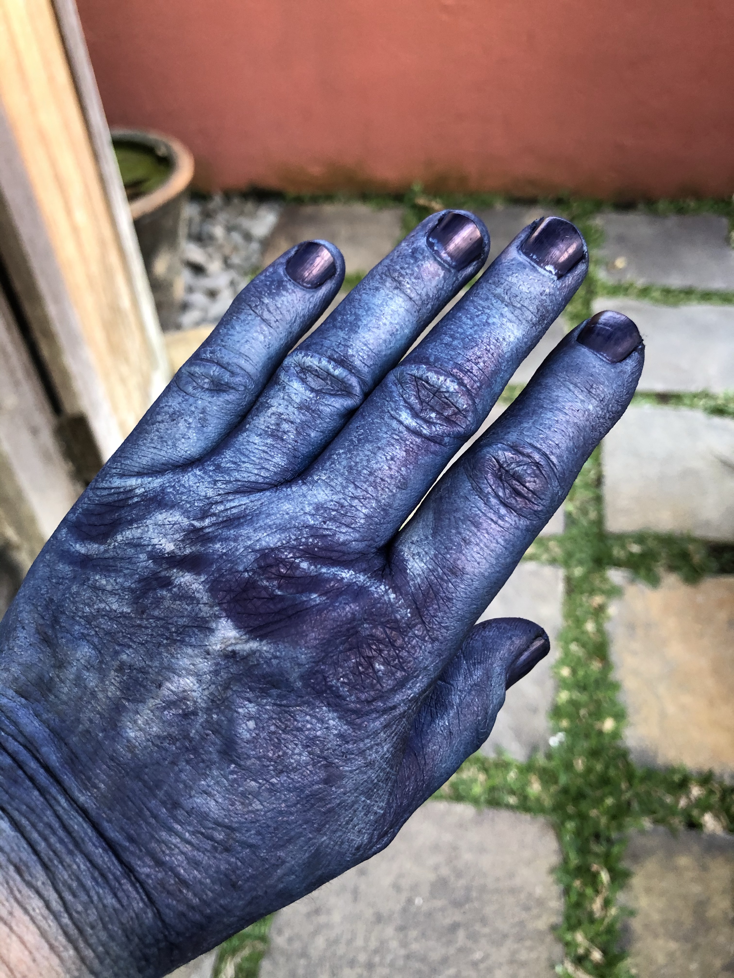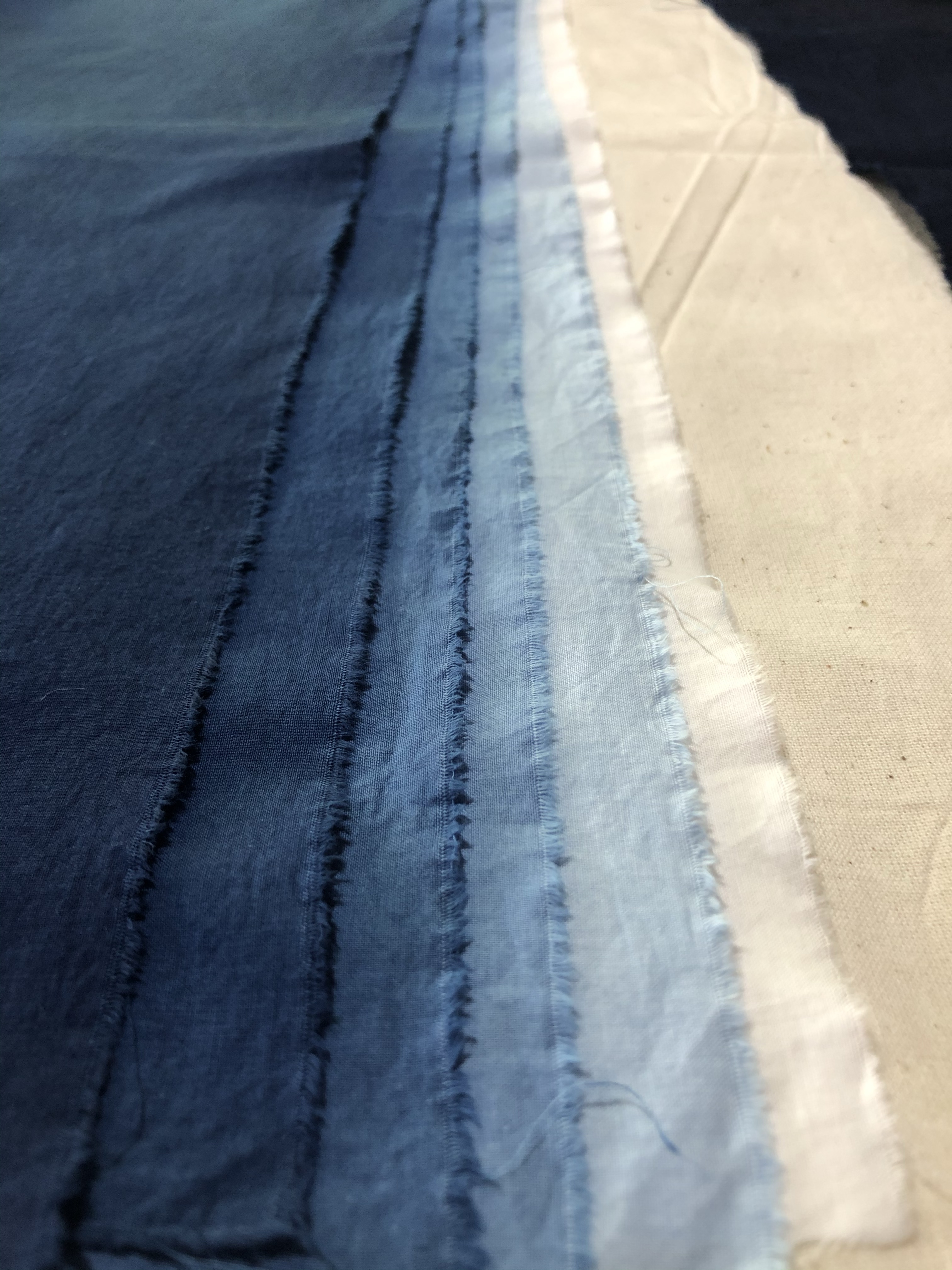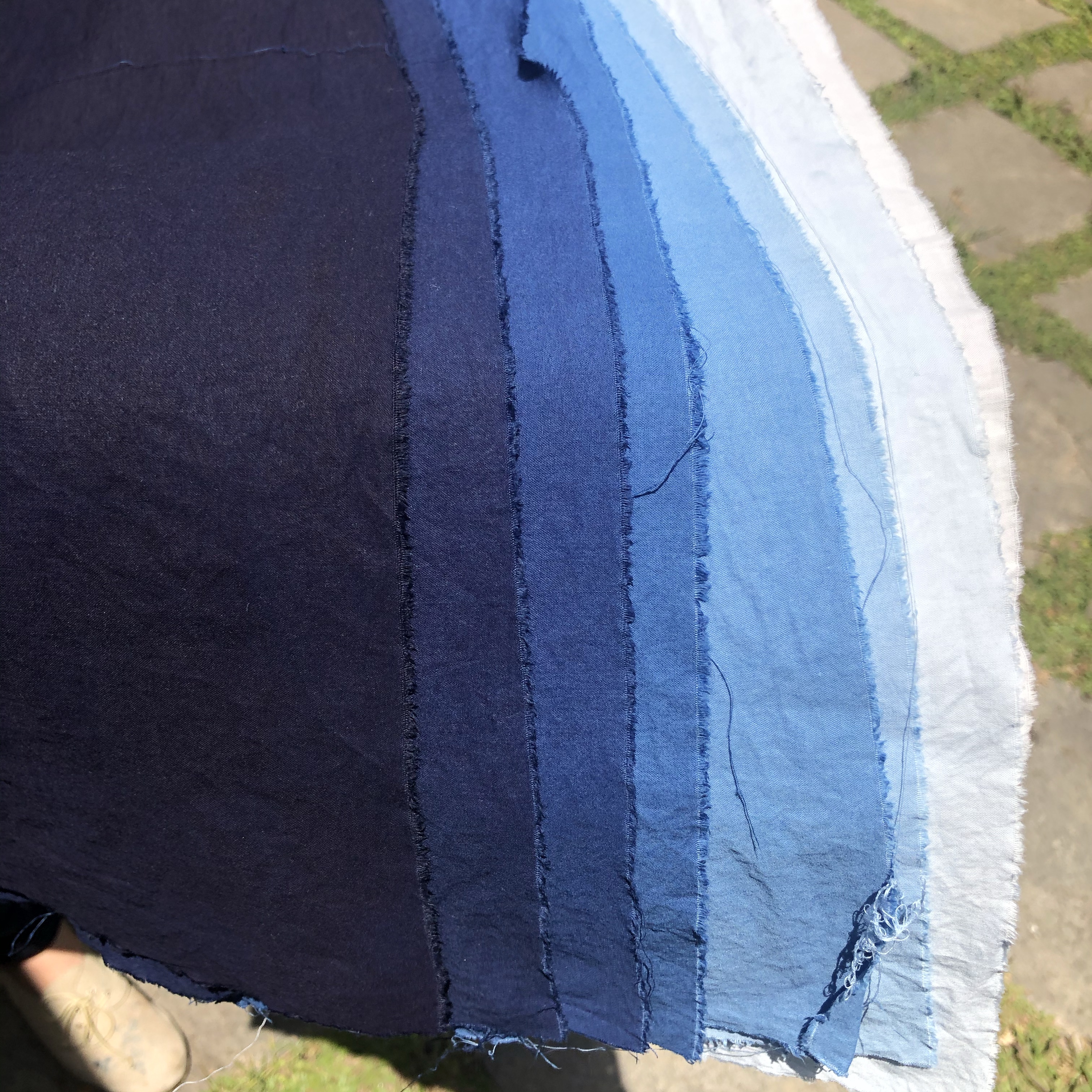 In 2022 I started a Natural Dye Garden in the Glasgow Botanic Garden “The Indigo Plot” https://thelansdownehouseofstencils.com/2022/05/30/theindigoplot-at-the-botanics/ I love the idea of helping people making the connection between plants and colour. As a natural dyer I care for the environment and I aim at working in a sustainable way. The quality of my process and the ingredients I use are important to me and I want to pass this on. In the first year in the dye garden I grew with the help of some volunteers some Woad, Indigo for blue, Madder for red, Genista and Weld for yellow, some dye flowers and a lot of Flax. I shared during workshops and an exhibition in Septembre. I also curated a project with some home growers in Scotland. Together we grew Japanese Indigo and experimented with it.