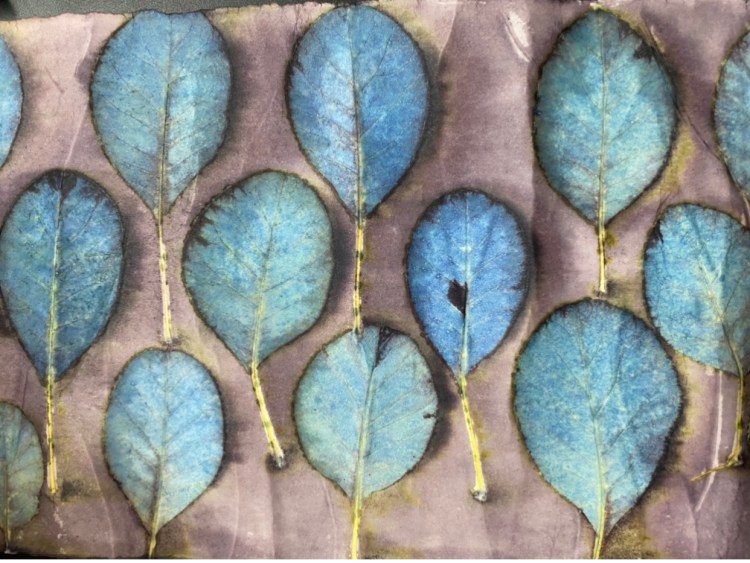 If you want to take part in the project look here for future workshops or PDF methods for fabric and paper printing. Taking one workshop or obtaining one method will allow you in the group. https://thelansdownehouseofstencils.com/2021/09/01/the-true-colour-of-the-cotinus-how-to-make-blue-eco-prints-from-cotinus-leaves/