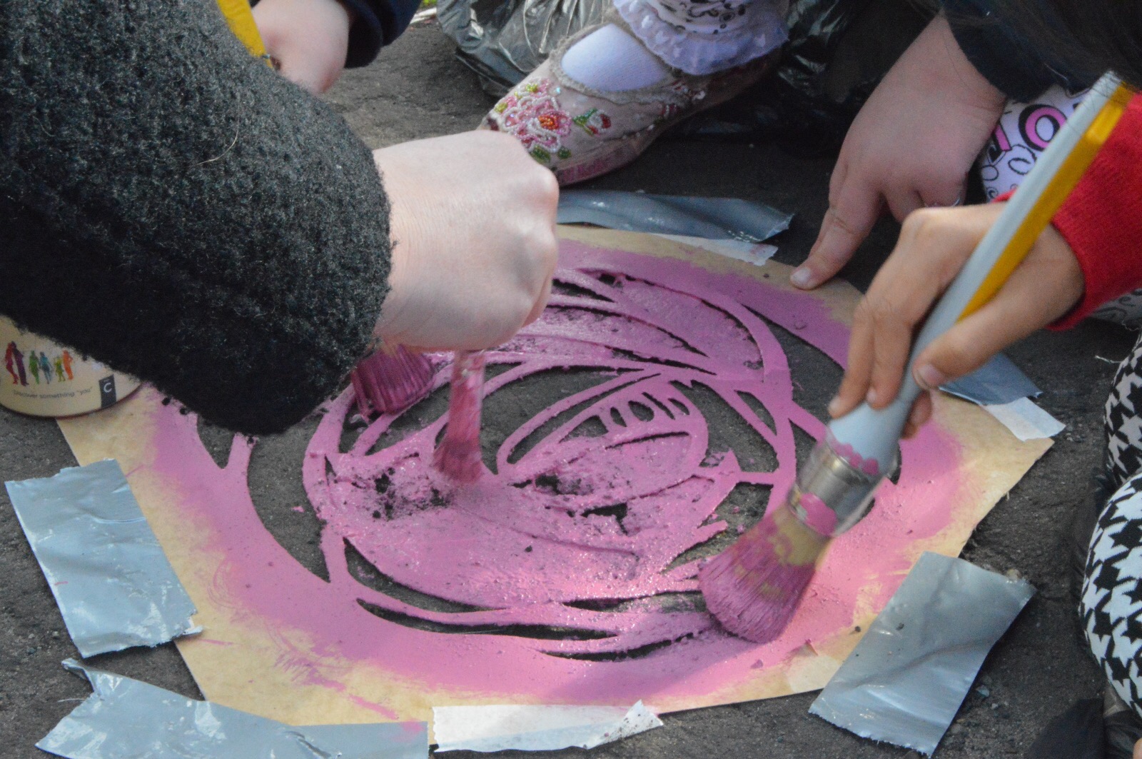 She has a strong interest in Community art and she has been running almost yearly programs involving the Community in Art projects, such as The Big Rose, (West of Scotland, Mackintosh Festival 2016) involving over 500 participants across 13 venues. The public was involved in stencilling large Mackintosh roses outdoors creating communal carpets outside Mackintosh buildings.