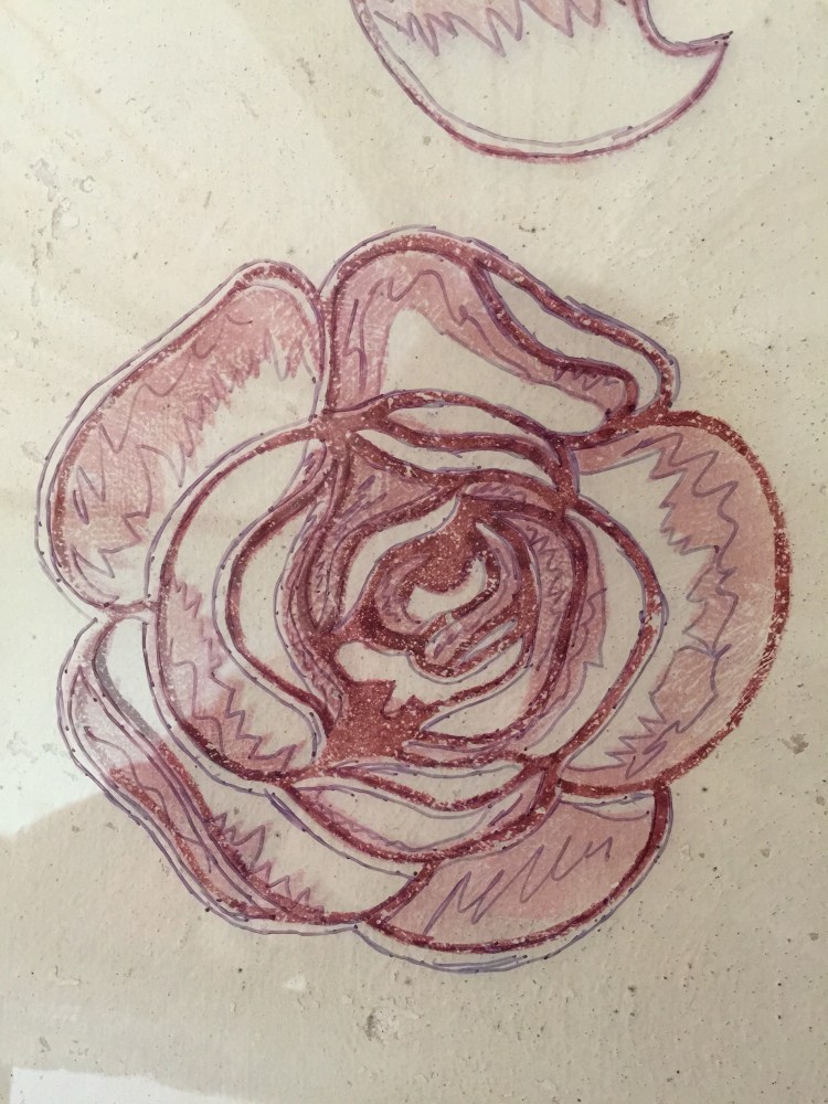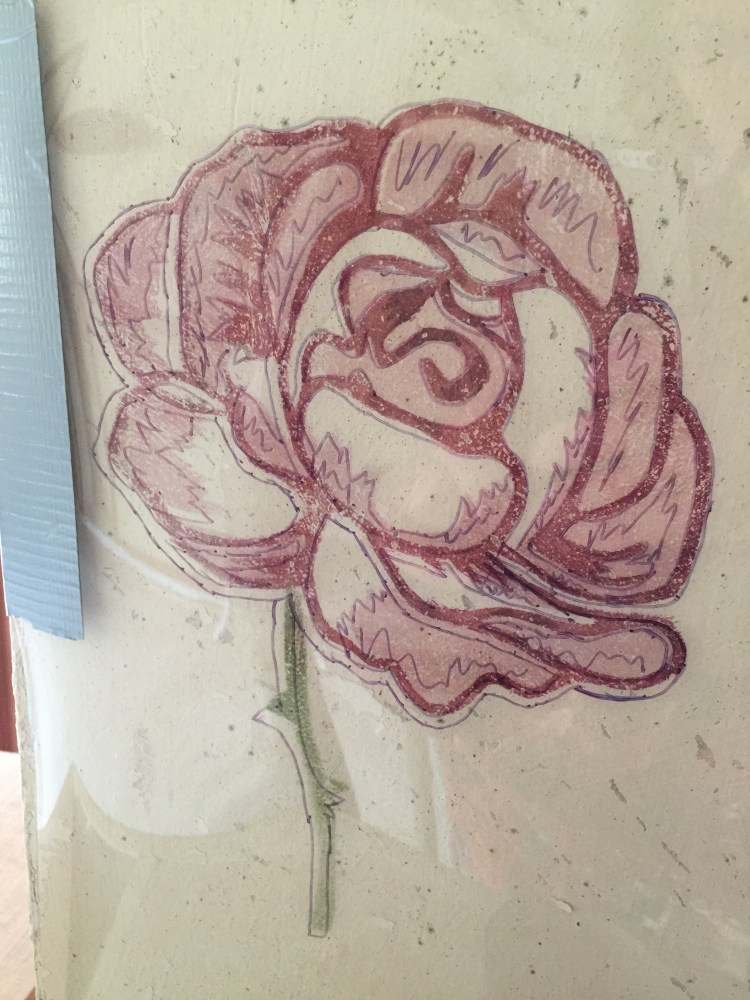 I then photocopied the various component of the pattern and moved them around till I found an element of rational. I then cut the film of cellophane with three stencils for each motif.
