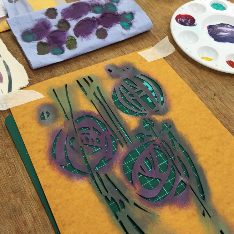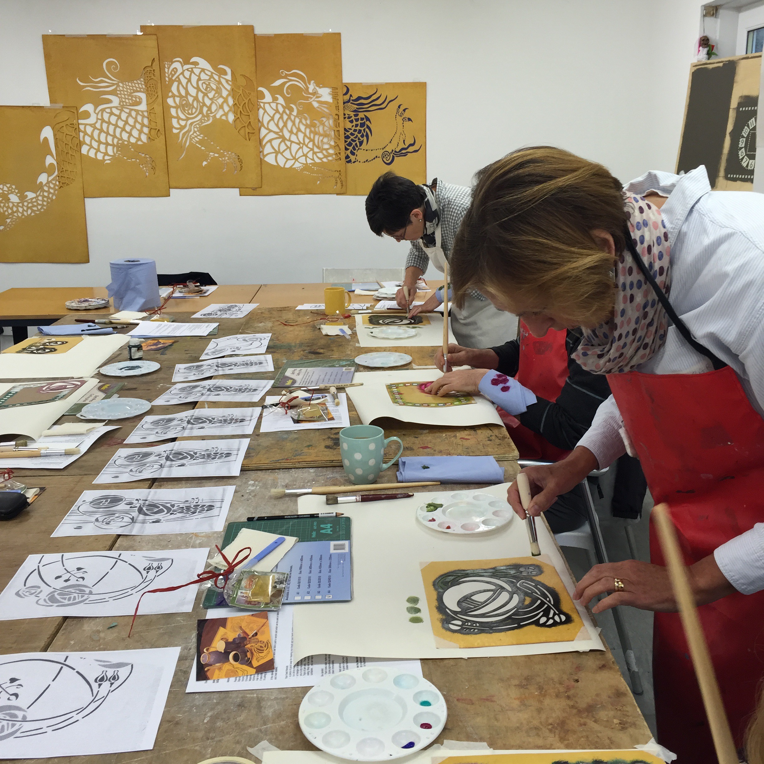 I offer week end classes with The House for an Art Lover in stencilling where you will learn the basics if you are a beginner but if you are passionate I will push you to the limit of your creativity. Either or you will come out of the week end marvelled about how much you have achieved and so quickly.