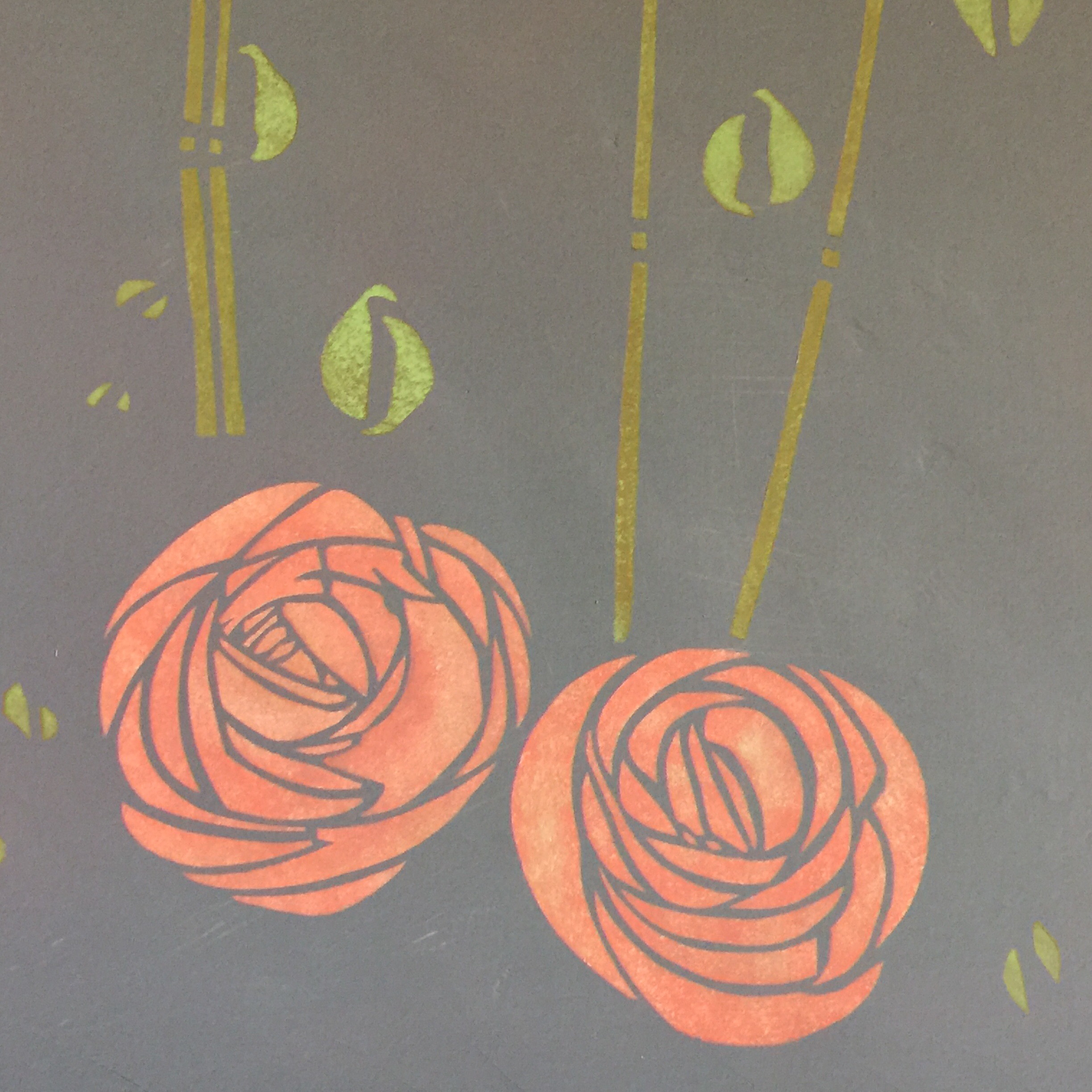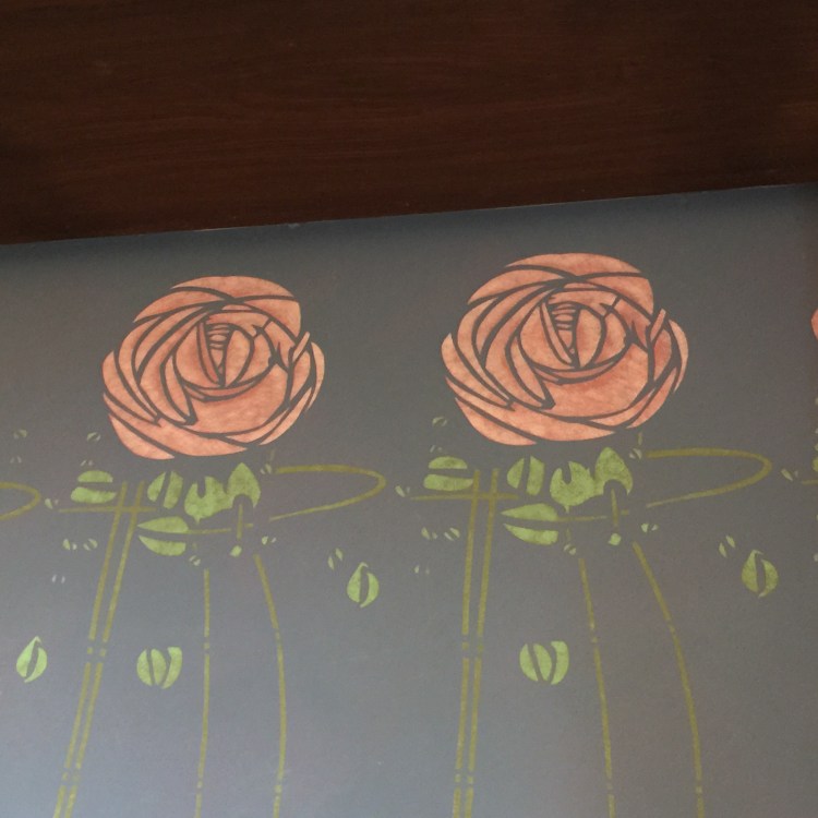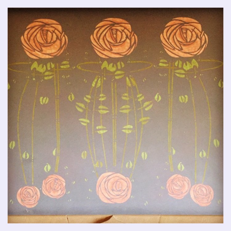 For the first week end of April we will learn the ropes of stencilling like turn of the century craftsmen and painters. We will design a stencil, learn to apply it to wall, furniture and fabric. We will use traditional material and several types of paint. But also we will take a minute to view the magical stencilled schemes of The House for an Art Lover. Re-created from Mackintoh’s drawings and some of his existing schemes they are a great example of Glasgow Style stencilling. I was lucky to be able to stencil part of that scheme and I will answer any questions on the realisation of it.