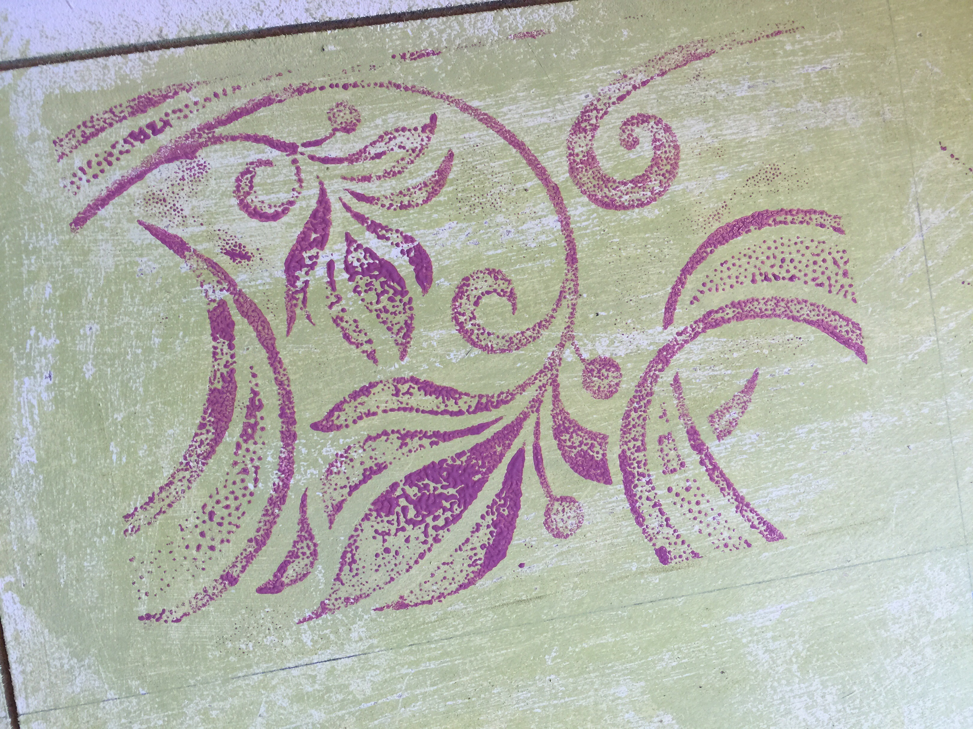 My 8 students had brought their own piece of furniture, and the place was buzzing with chat, brush noise, hair dryer, smelling of glue and paint… Different projects, colour schemes so exciting! Discovering all the creativity you have in yourself is a very powerful tool to your well being. Give me a piece of sand paper any day I am feeling down and I feel my blood flowing better than with chocolate or even red wine 🙂