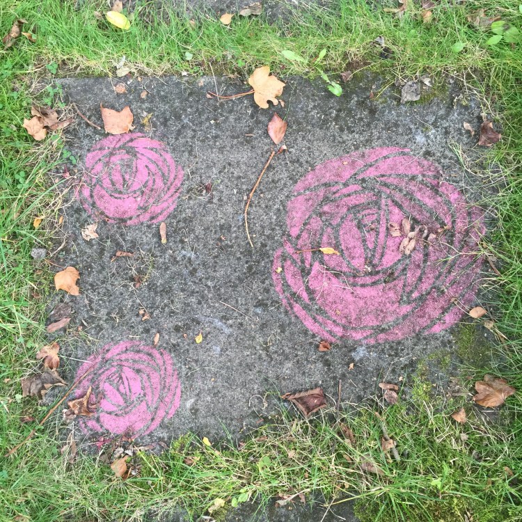 The leaves have started coming down on my garden path and #thebigrose I stencilled a while ago are fading gracefully … They remind me that in a week tomorrow I will be packing up stencils and brushes, paint and knee pads for our first day of the project at The Hill House in Helensburgh on the 2nd of October.