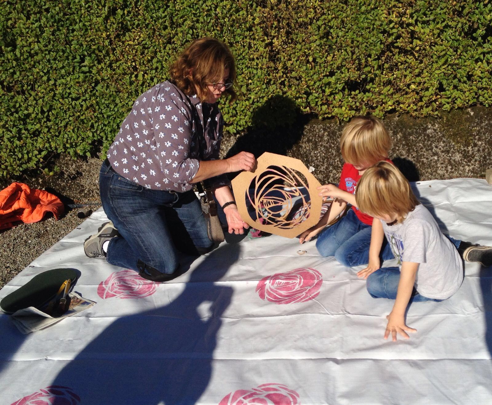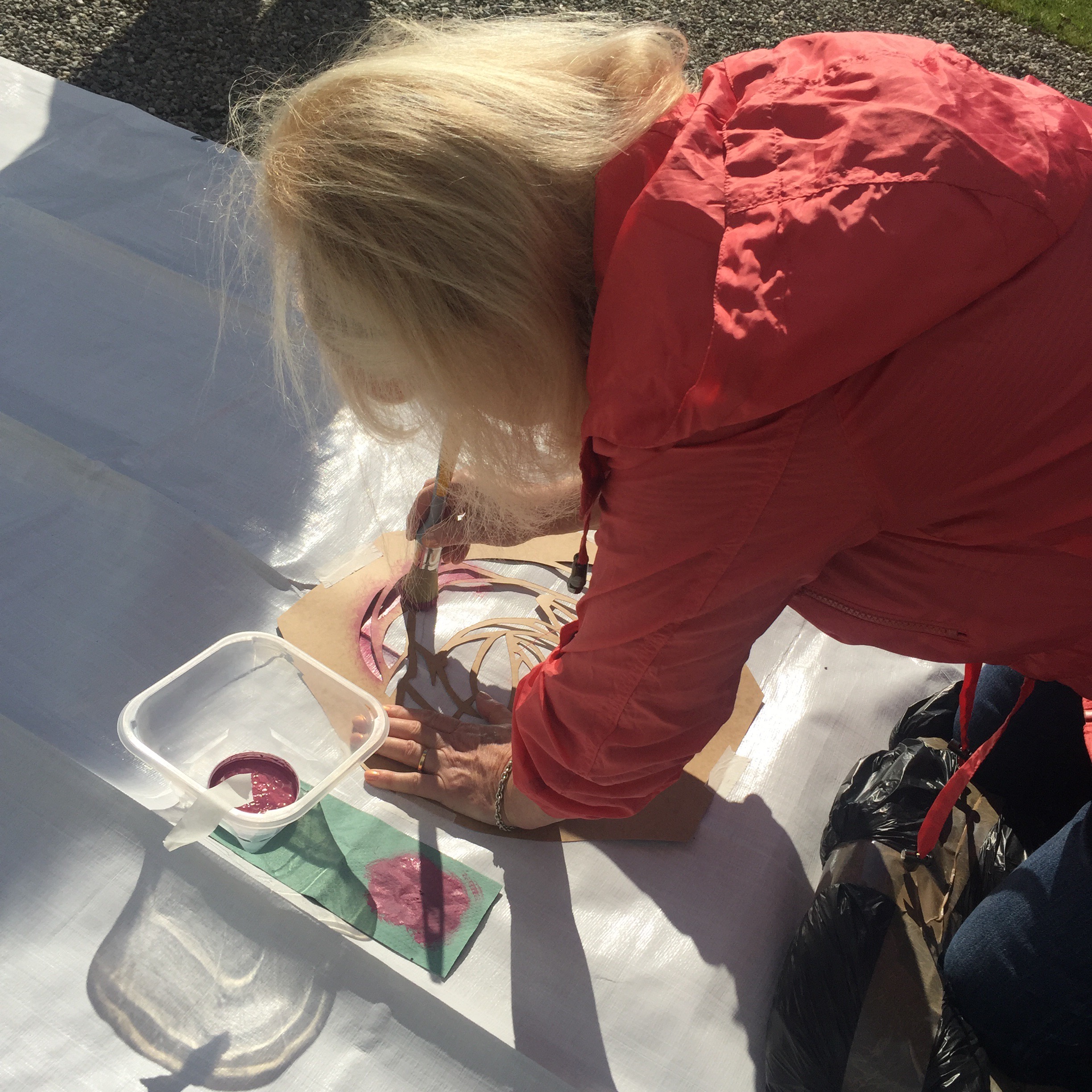 We had a very early starter, a local lady member of the local Art Club… she had just booked herself on my stencilling workshop later this month in Helensburgh but she wanted to try her hand at the technique. We had visitors to the house who found us by accident, we had young family rallied by a friendly Facebook post who came to amuse their young ones. We had international travellers…