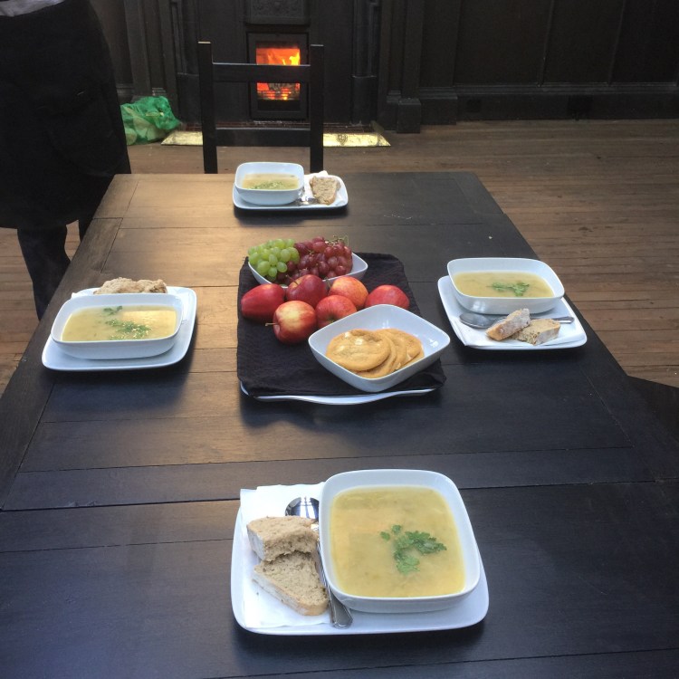 Lunch arrived in good time for tired participants. A beautiful bowl of home made soup (what a treat) and rustic bread before fresh brewed coffee and cookies were welcome by the participants and the door bell rang… A local photographer had heard about the party and decided to make his way to take a few snaps… For the local paper… What a treat to read about our day in the local paper the next day… Such a good story to tell…. The Helensburgh Advertiser told the story as it should and even better featured a good deal of photos. What a fun day !