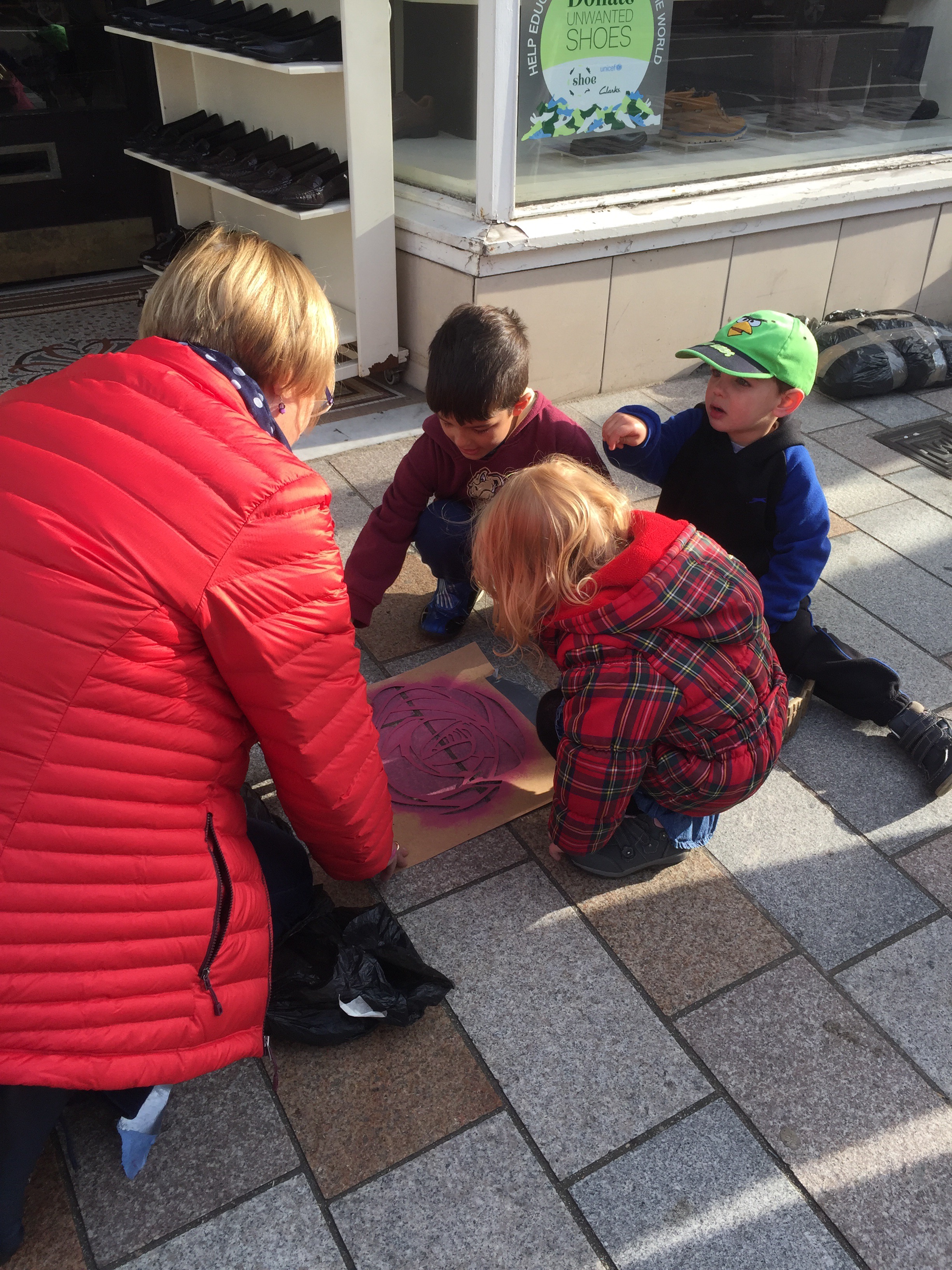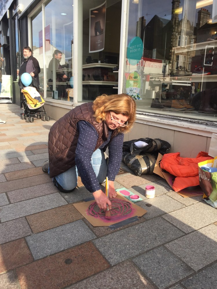 Oh!!! Did I say Lorna, the property manager from The Hill House was passing by as we were stencilling and she smiled knowing she already has one of our carpets in her garden… that up the hill at The Hill House. So when you have seen the roses in Sinclair Street why don’t you make your way up there… The carpet will be there until the 31st.