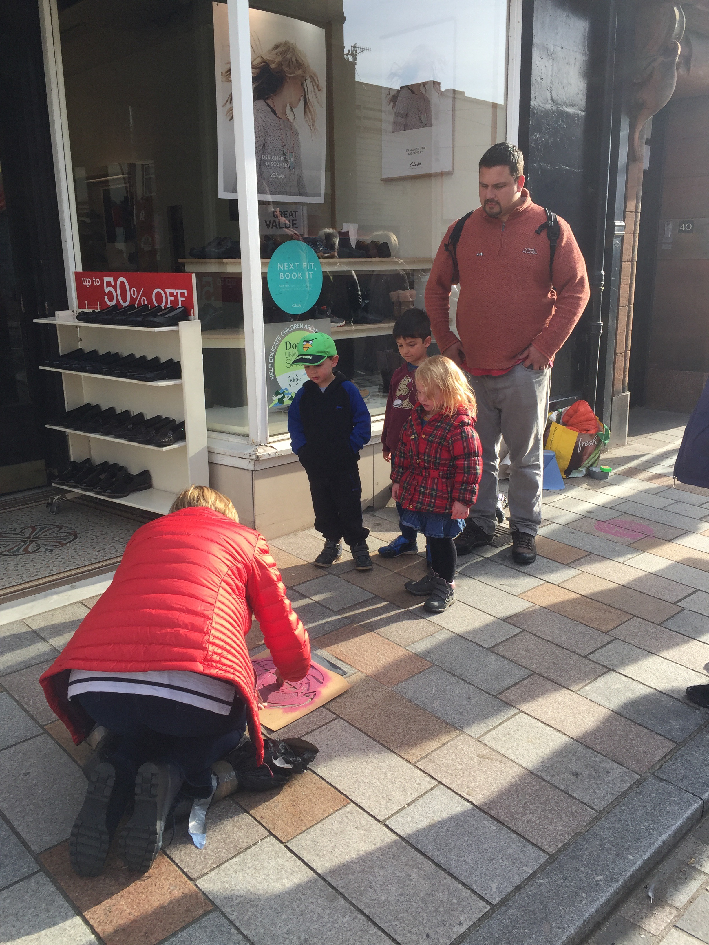 This was a #thebigrose private party but as soon as we started as it had happened before the public was just there asking “what are you doing” “can i try?” “is that allowed” “how long before they go away”… We had some children kneeling down and having a go… and by some kind of magic Stuart Robertson, director of the Mackintosh Society arrived with two visitors a good time to inspect the work and give an interview.