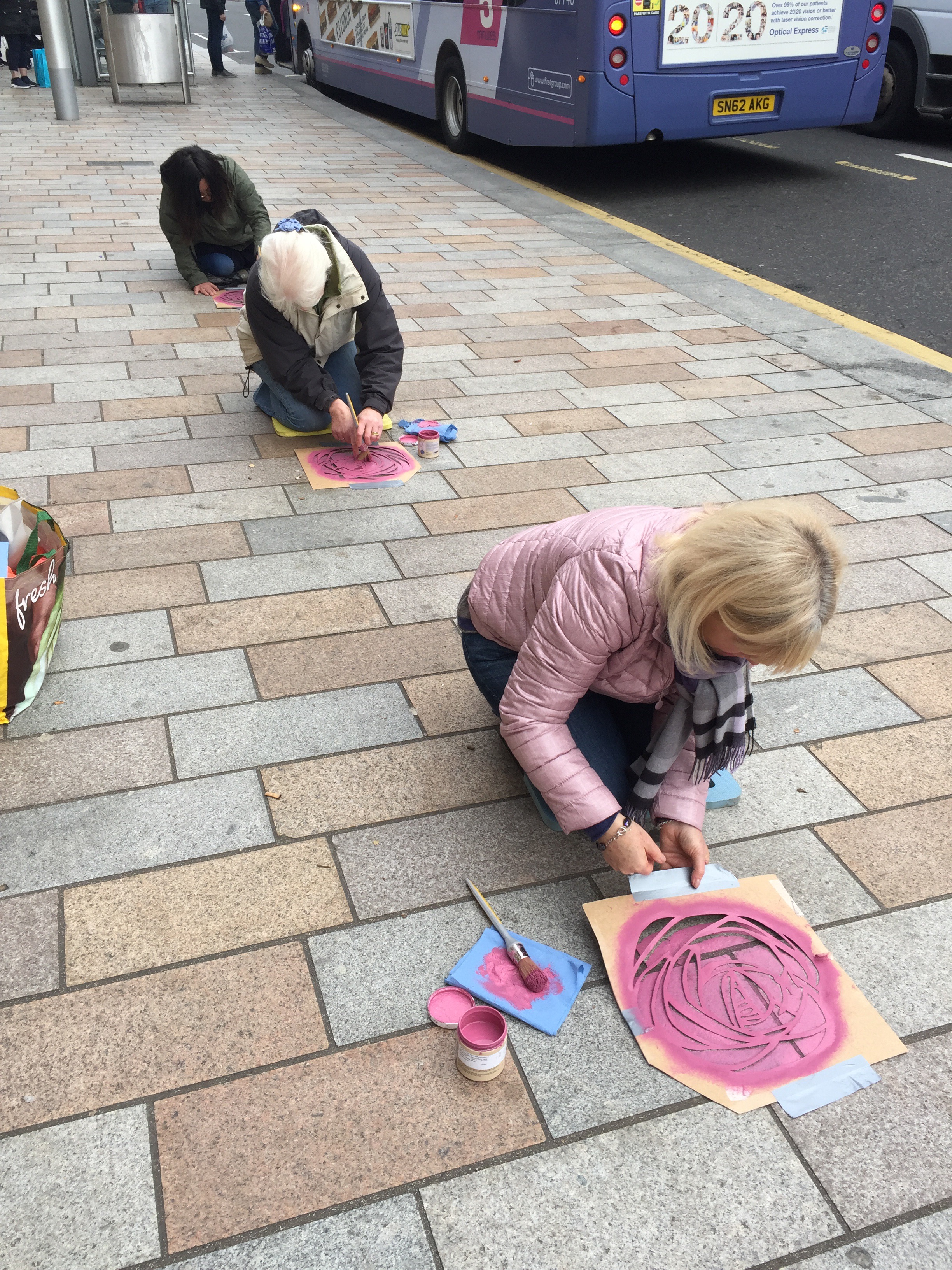 This week saw #Thebigroses back in Helensburgh but this time right in the centre of the town when The Mackintosh Club hosted a masterclass in stencilling in its glorious premises at 40, Sinclair Street, 2 up…