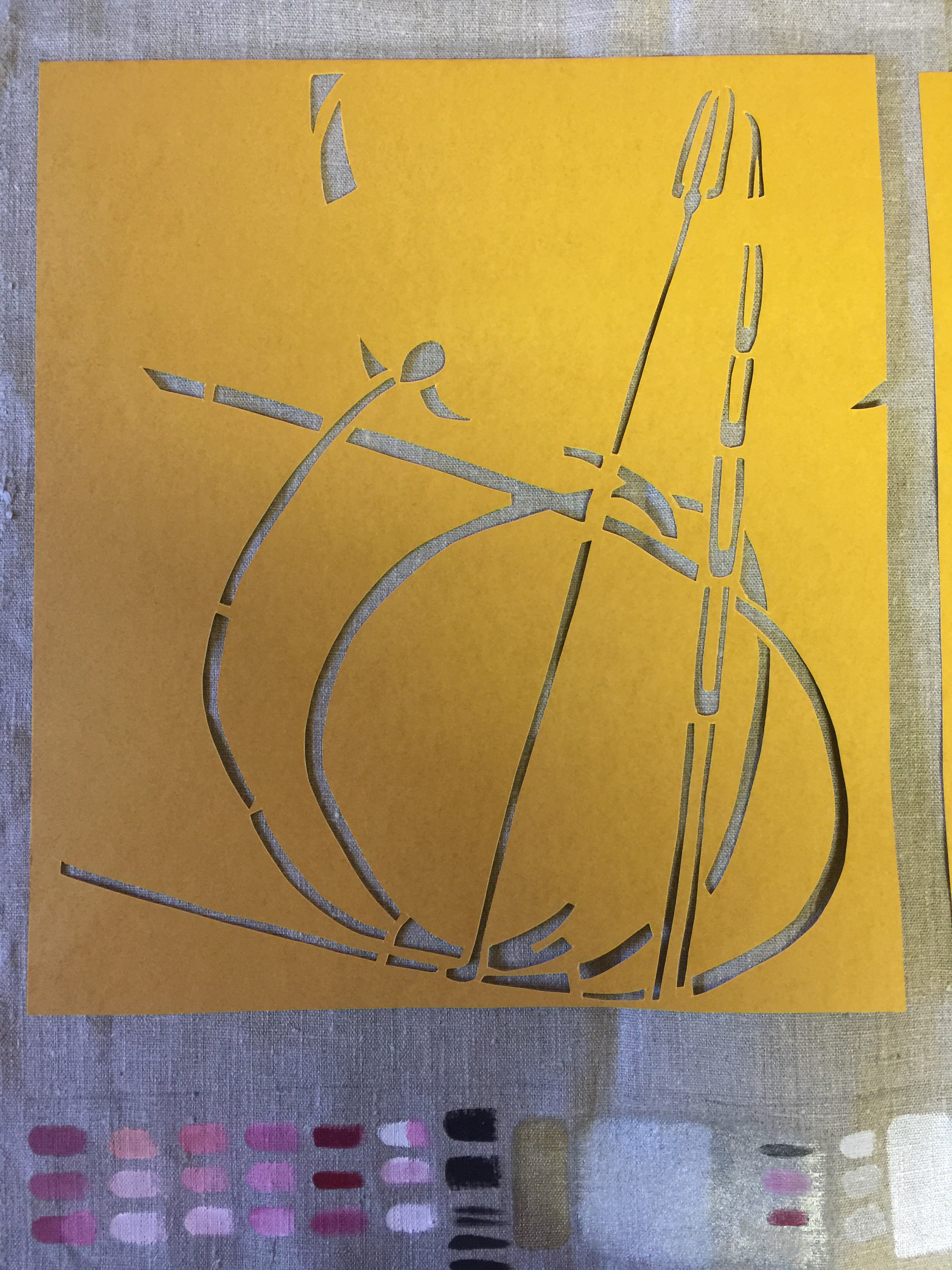 To recreate the stencil, I used a tracing of the original on tracing paper before transferring on oiled manilla card and hand cutting it.