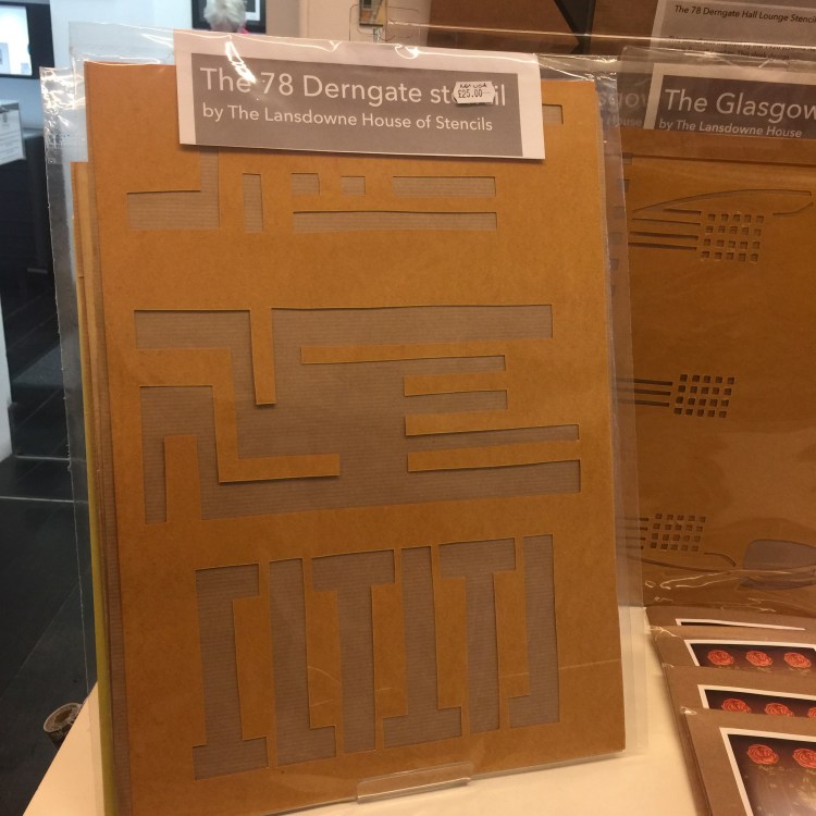 My stencils are available for sale during that period in their shop at 82, Derngate Northampton, a range of traditional Mackintosh stencils, roses and square but also two special designs edited for the occasion under the label of The 78, Derngate stencil.