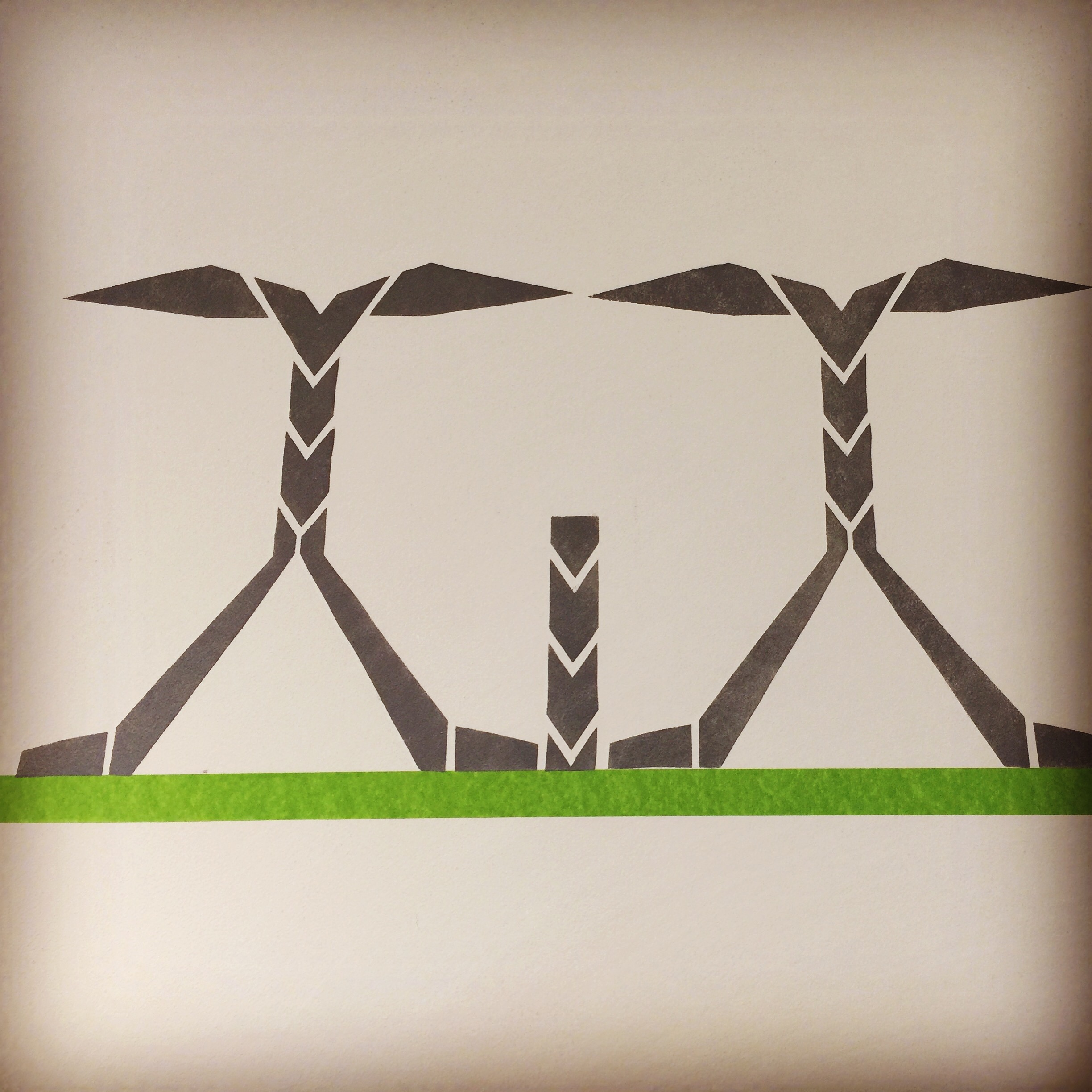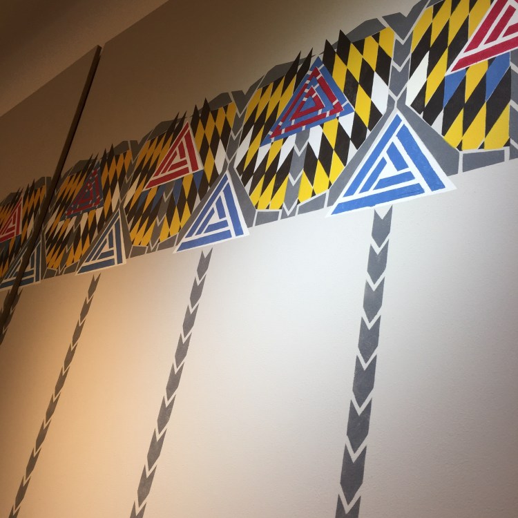 So I did what I do well, I spoke to her about stencilling, general stencilling, Mackintosh stencilling, flat stencilling, textured stencilling and more importantly Mackintosh war time stencilling I had just worked on the recreation of the 1920’s scheme for 78, Derngate, a fascinating design for Mr Basset Lowes ‘s Hall Lounge. A complicated frieze made of 9 different stencils. But by far the first layer was the most striking and we all agreed about this.