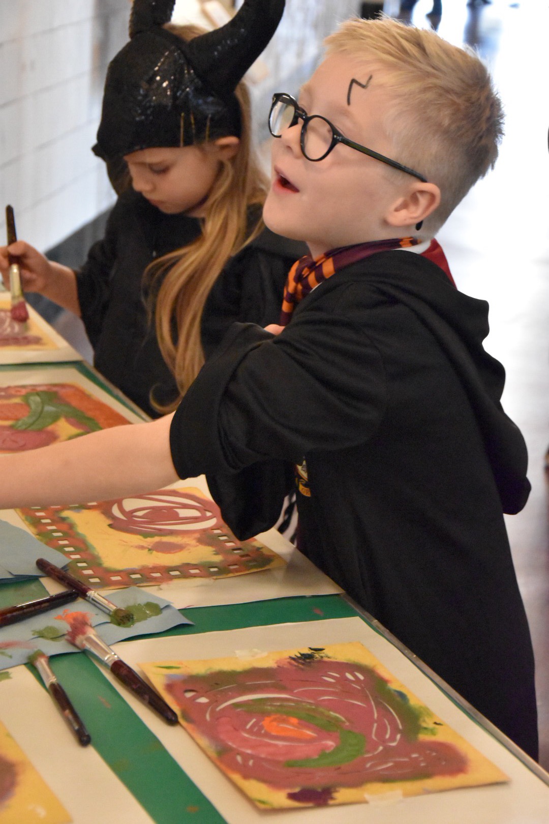 It was the “Wizzard school” this week. A wild event where douzains of wanabe “Harry Potter” and dressed up witches were running through the building from activity to activity. What a great idea was that… I teach stencilling to many children but its not everyday that wizard come to school to learn to stencil a Mackintosh rose…. We all had fun on that day.