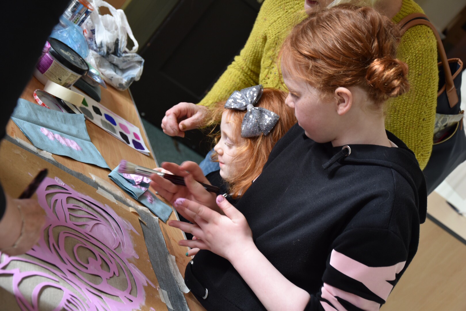 But back to my lovely quiet, middle age, retired and no Scottish group what a very relaxing workshop that was. It shows you that stencilling is really a technic for all. In that very location running the same workshop the age range of the participants was between 4 years to 75 years old !!!