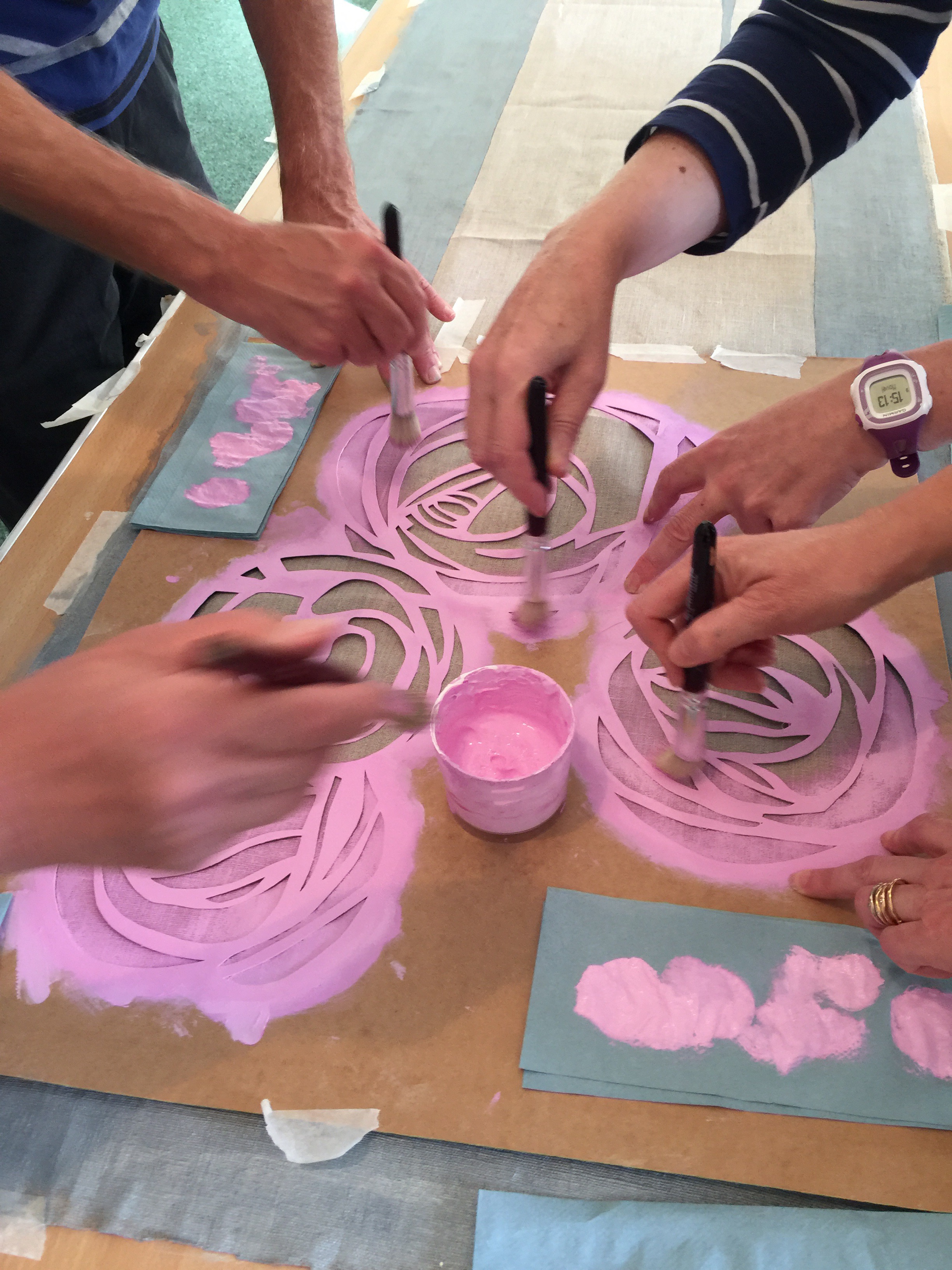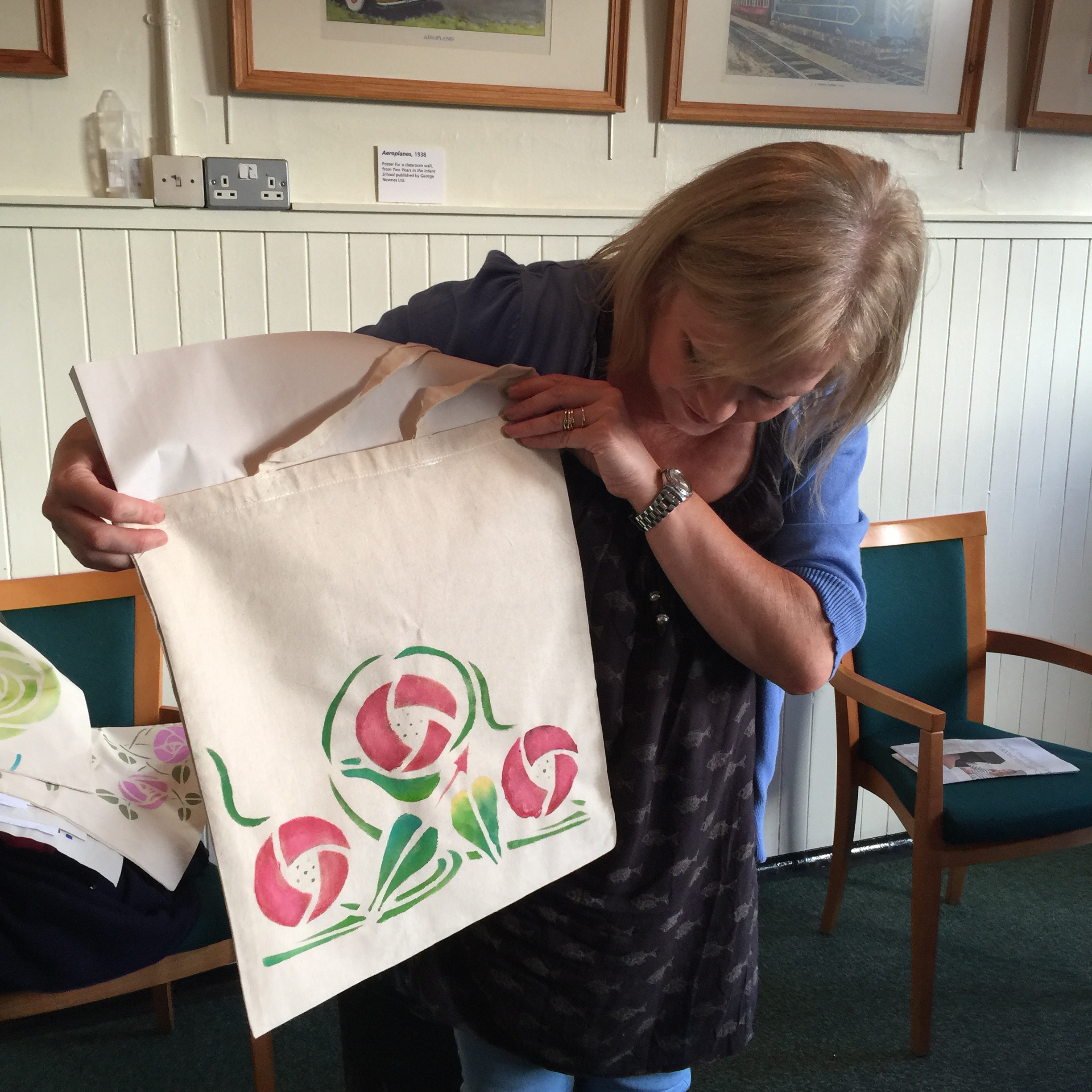 But also yesterday’s group took stencilling to a more personal level and went away with a tote bag they had designed with the roses stencils available and after having practised the technique to perfection. There is a great reward in “hand made” and I am always happy to see how much joy my participants are getting out of realising they can produce something beautiful !!!
