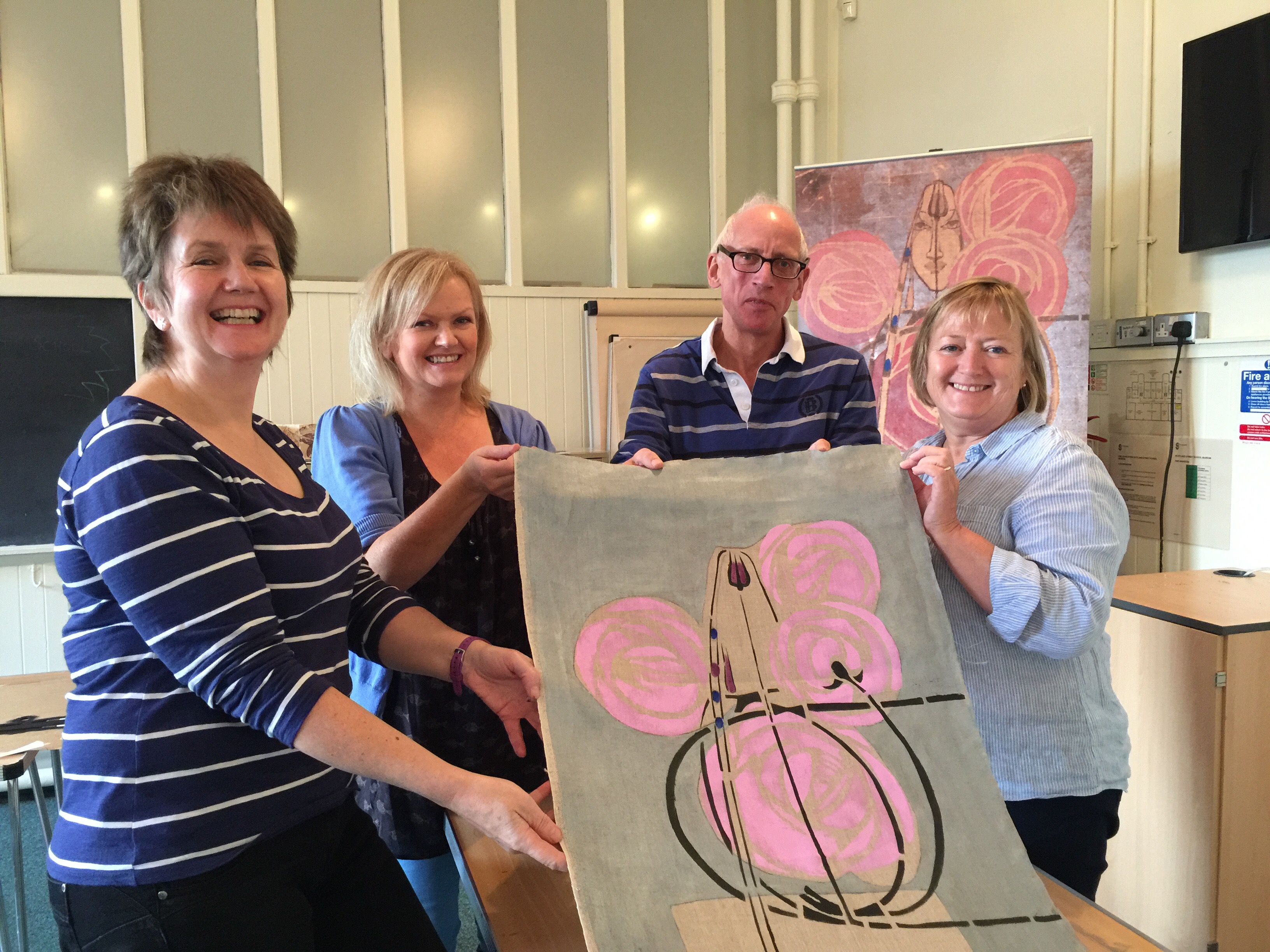 And they came from all over Scotland, to Scotland Street Museum … some of them early retired with a desire to learn new skill. A quiet small group focused on making the most of the day with me. They wanted to understand the technique, make something beautiful and spend a relaxing day… Making a big banner.