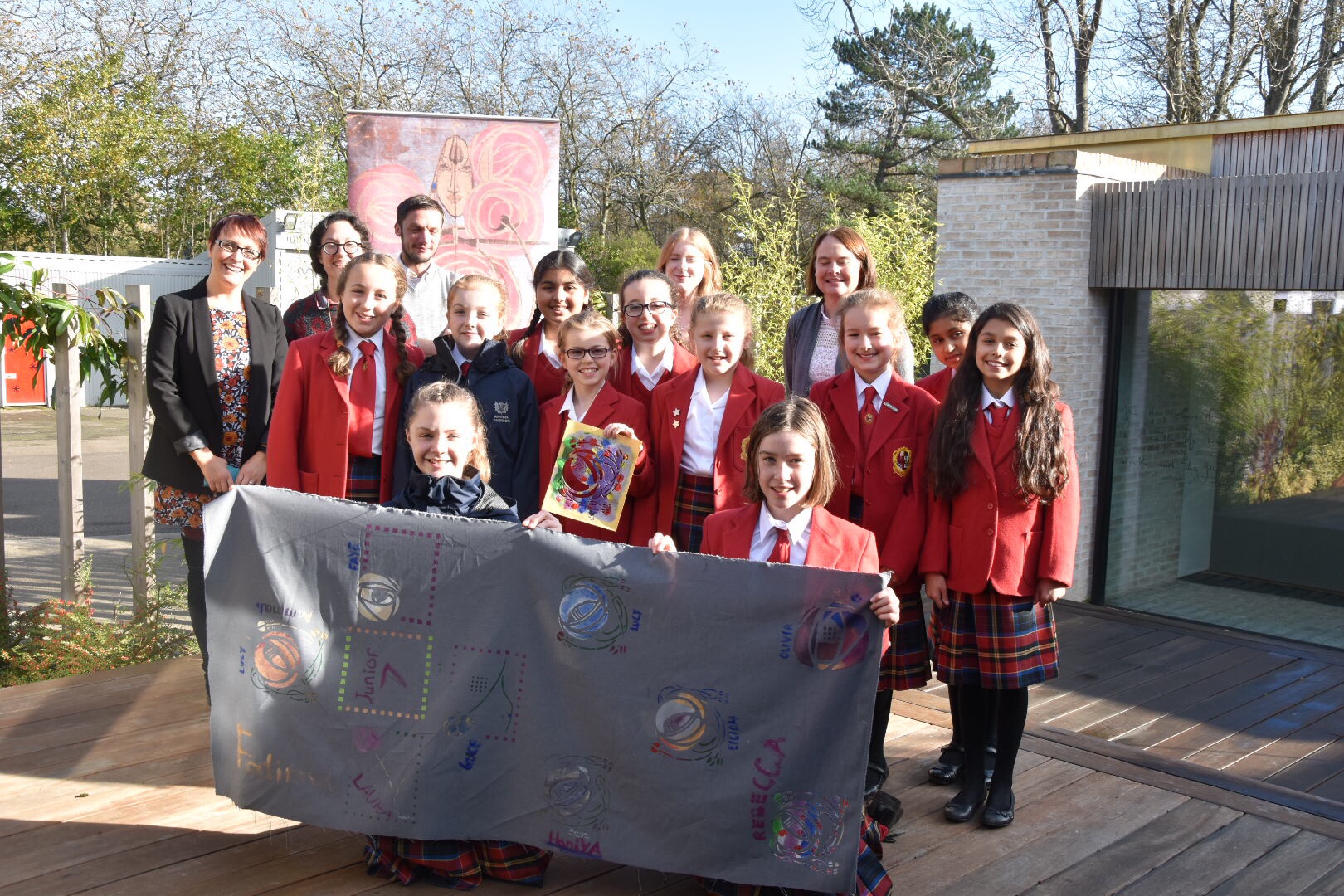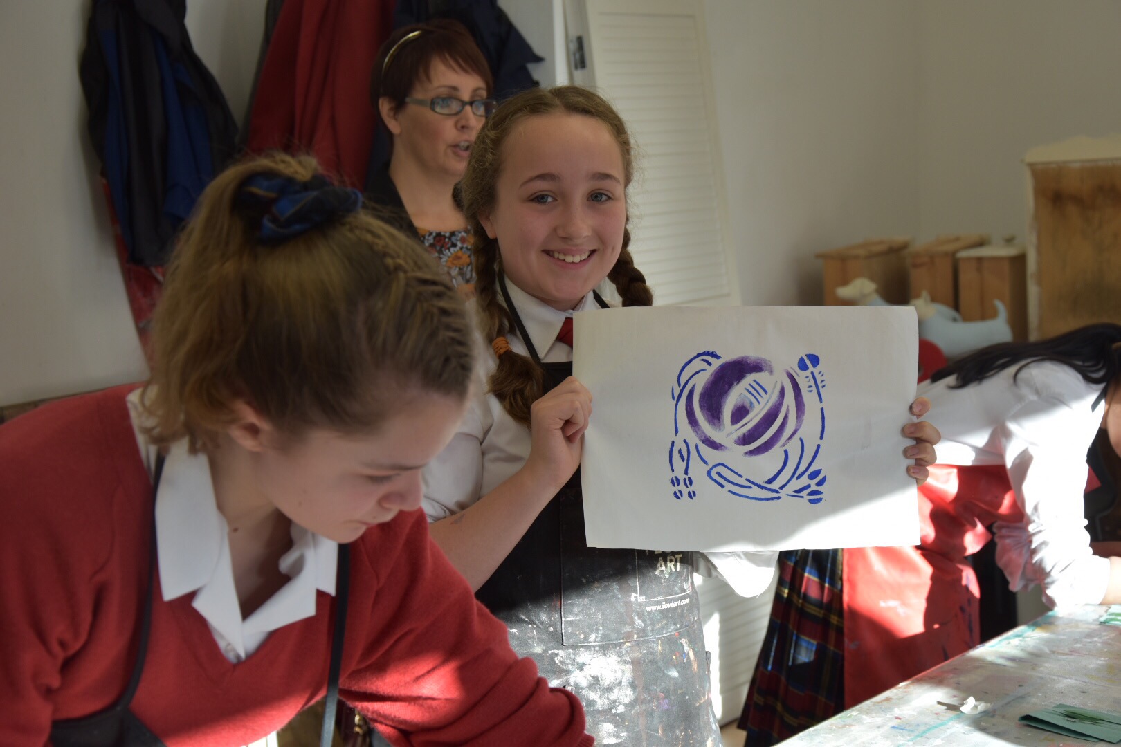 One of The Big Banner sessions took place in The House for an Art Lover with the class of young girls from Craigholms school for girls in Glasgow. 20 pupils came to discover Mackintosh, they left with a banner after having been taught to stencil in the traditional way and taken it one step further… the step of creativity.
