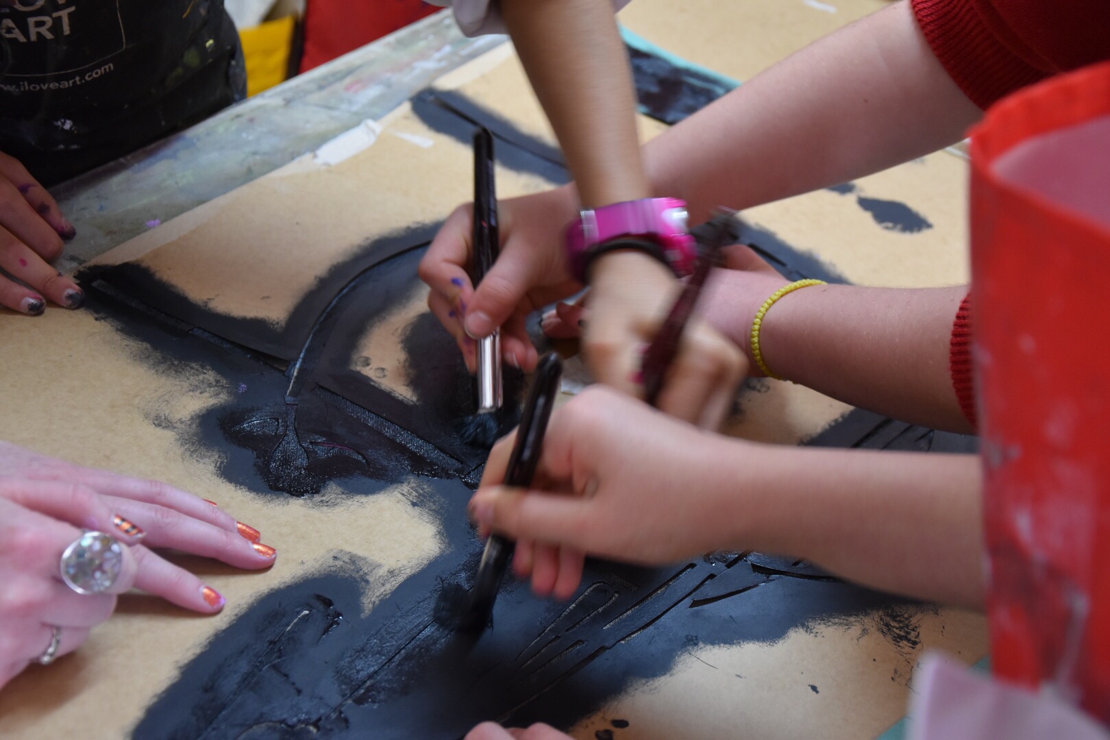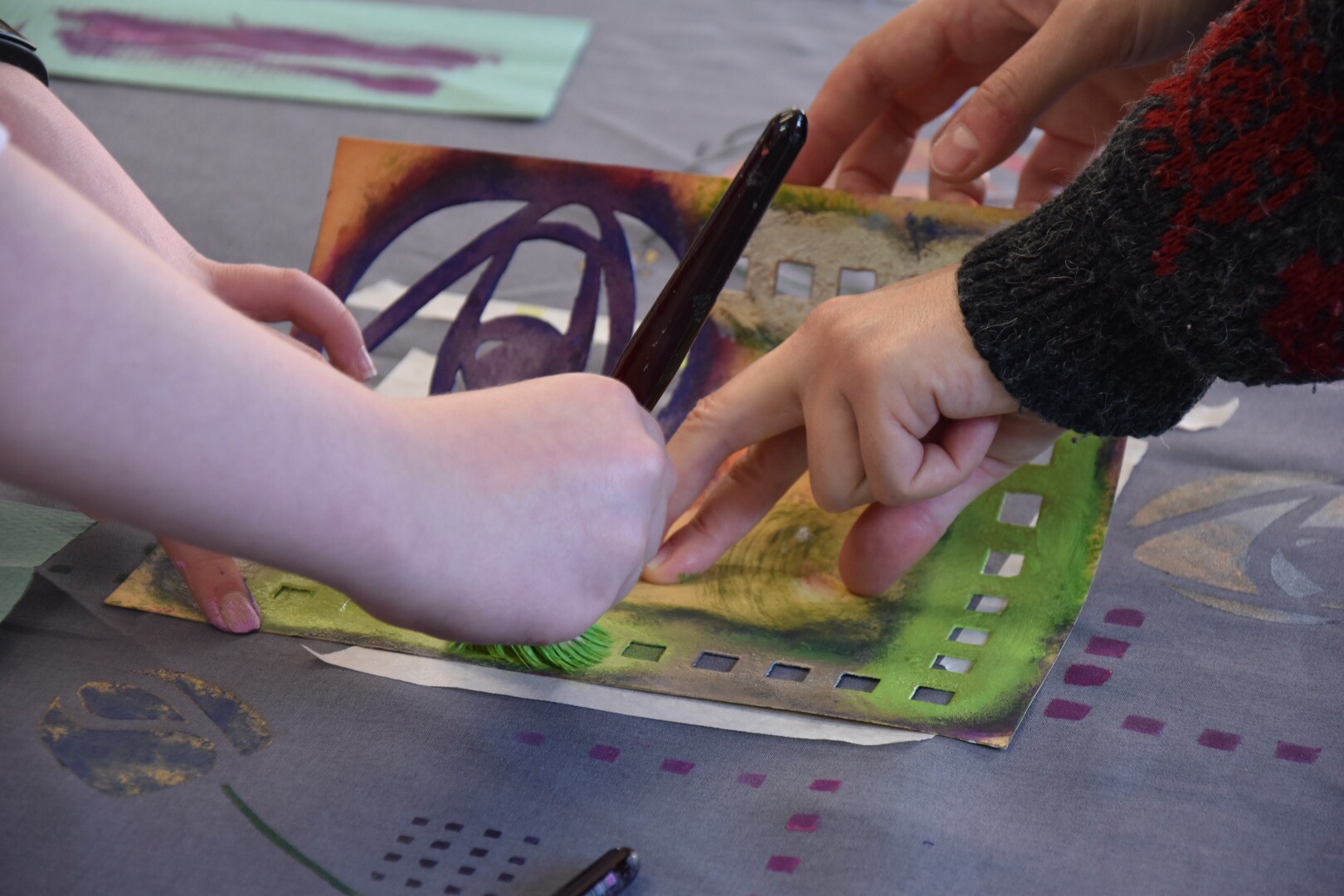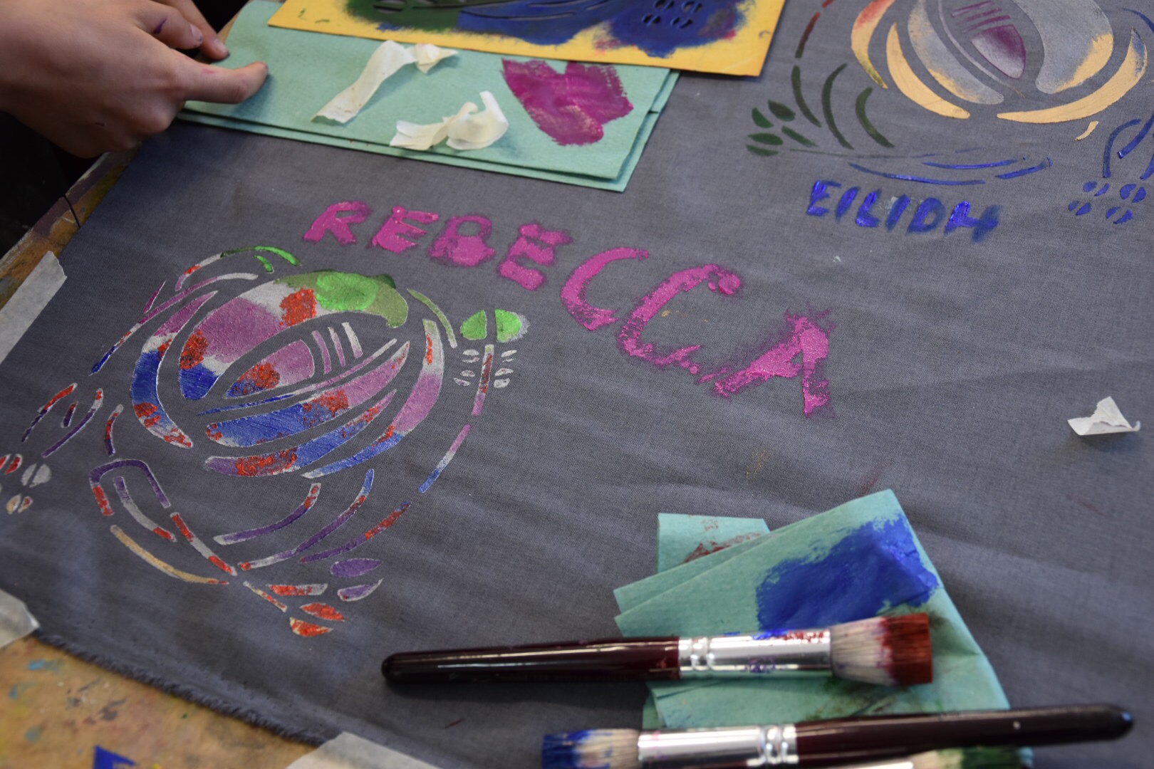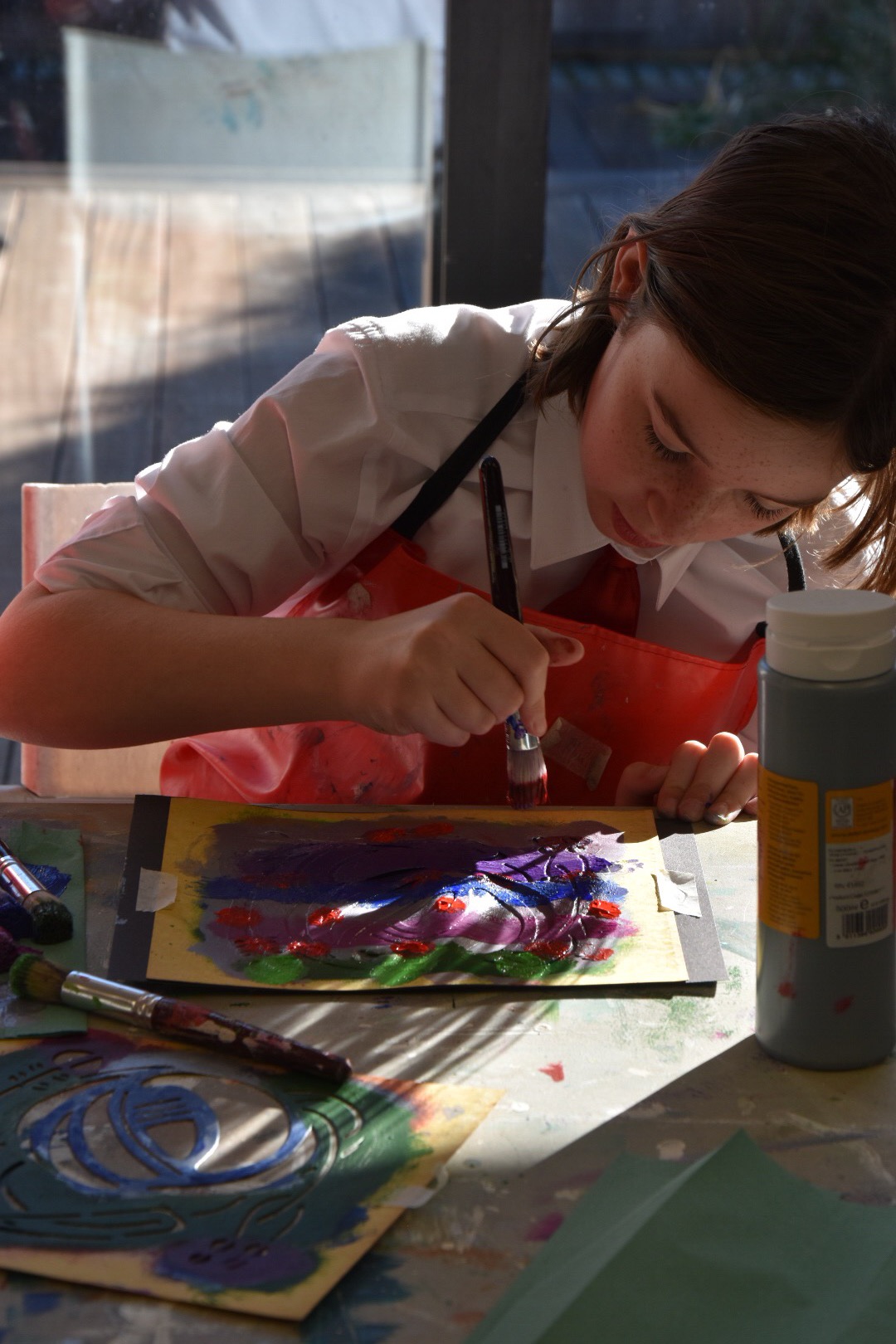 Young people are very open to creativity and they have no fear of the brush ! I mean offer any “non arty” adult to have a go at stencilling and they shy away … But offer a brush to a young girl and immediately you get marvelled by the power of creativity !