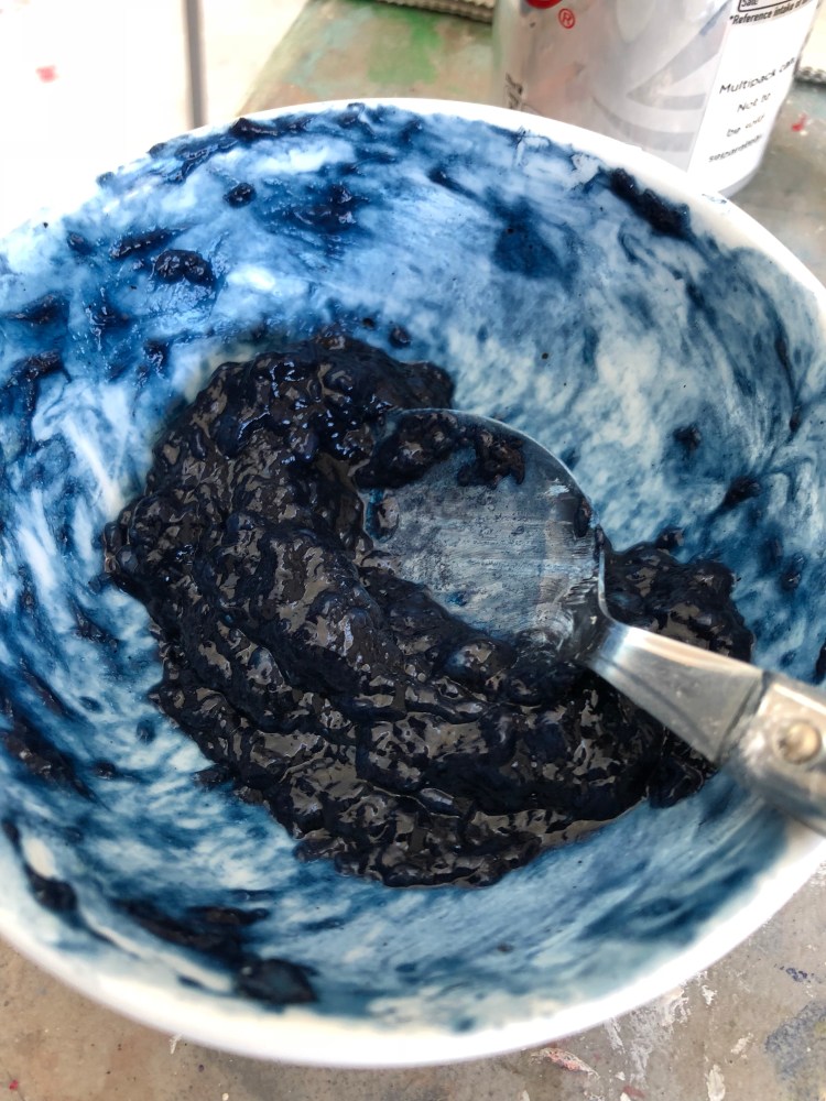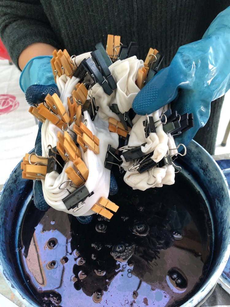 We used pre reduced Indigo ! I have found my organic Vat does not like travelling specially when there is no time to rebalance it’s Ph ! Pre reduced is perfect for teaching … it’s easy to manage and gives a good level of blue!