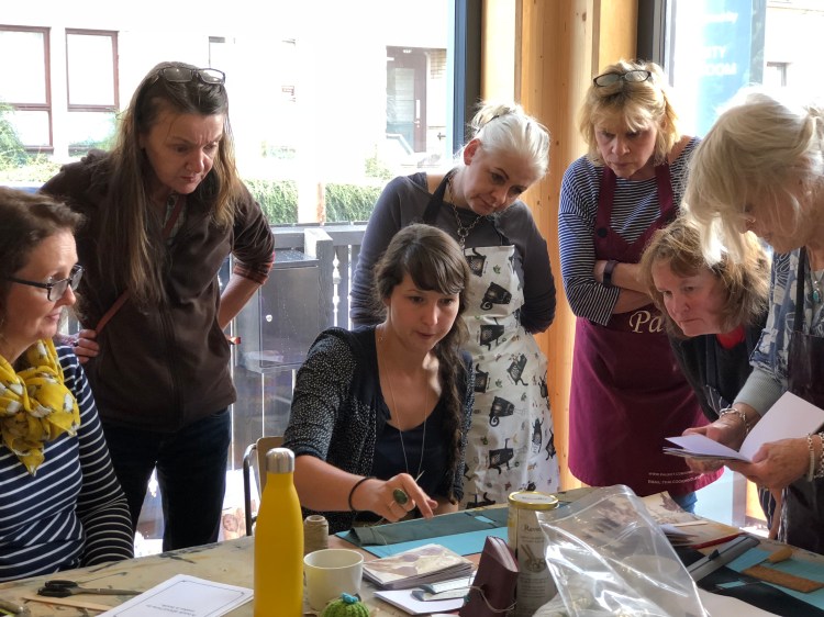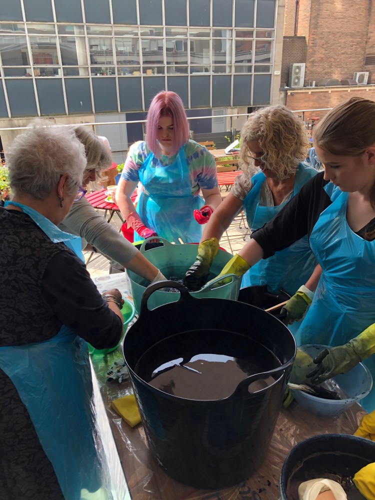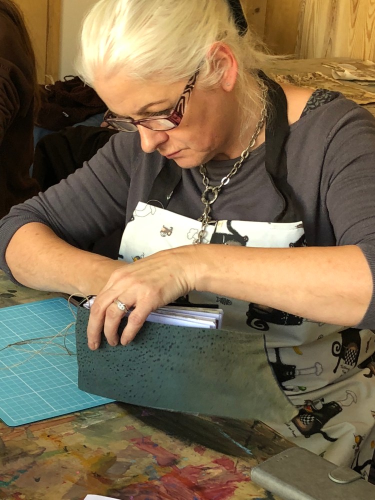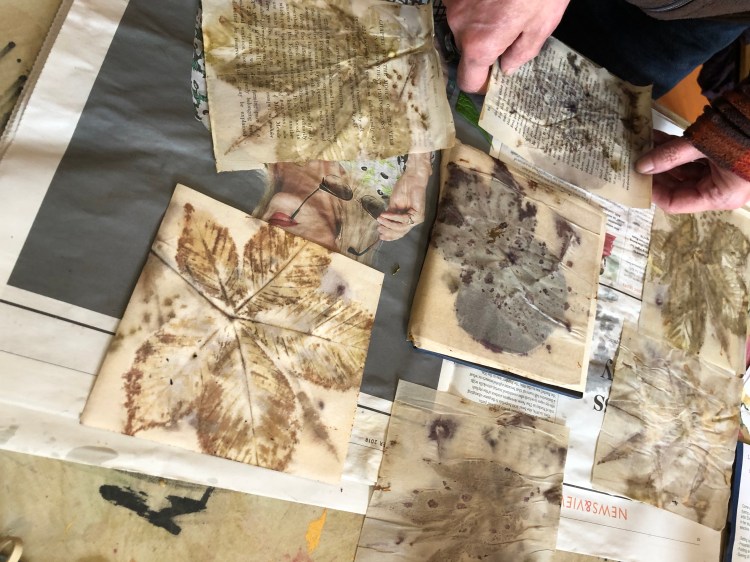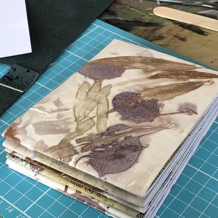 In September we Eco Printed some some lovely paper using local scottish leaves from the Glasgow West end and learned the bottom hole stitch on a piece of recycled leather to create a lovely journal in Glasgow. It was a great day in the wonderful Woodlands workspace.