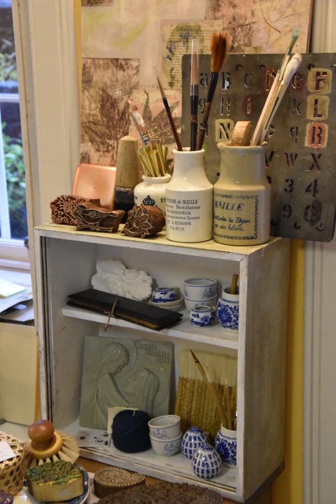 But off course now I cant share… My creative space has shrank into a table space with all included on it and from there I teach you my techniques online (check here… https://thelansdownehouseofstencils.com/category/learning-with-me/)