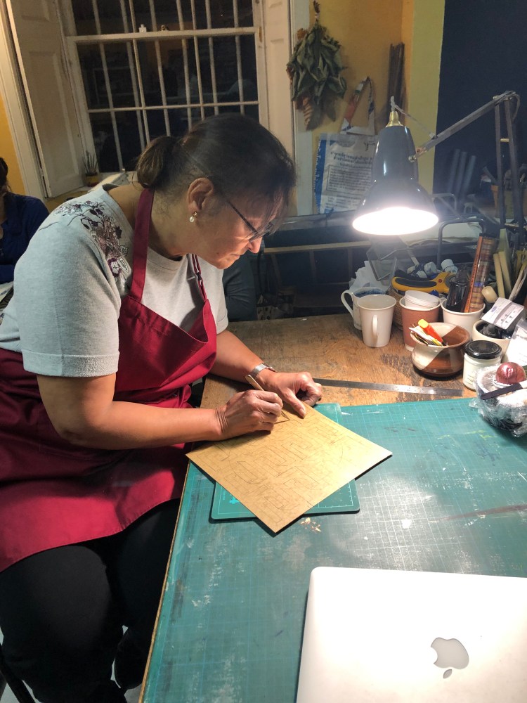 I am a people’s person before and foremost and I love meeting and greeting, I like welcoming people in our home and when it is work related I realised now that I have catered my studio like a home… When you come to a workshop with me in my own space … you are not coming into my studio… you are coming into my life. All around me are bits and bobs that have come from somewhere I visited… No affectation there… Only the memories of good time, bad time, shared time and time to come… That brush I bought in Hongkong in this little alleyway and I can still smell the smell and feel the heat and the sweat running down my back. That Indigo paste I extracted from my friend Mann’s Indigo leaves in Northern Thailand… come and experience with me… I cant share the time I collected it but I can share the story. I am a story teller… I want to share…