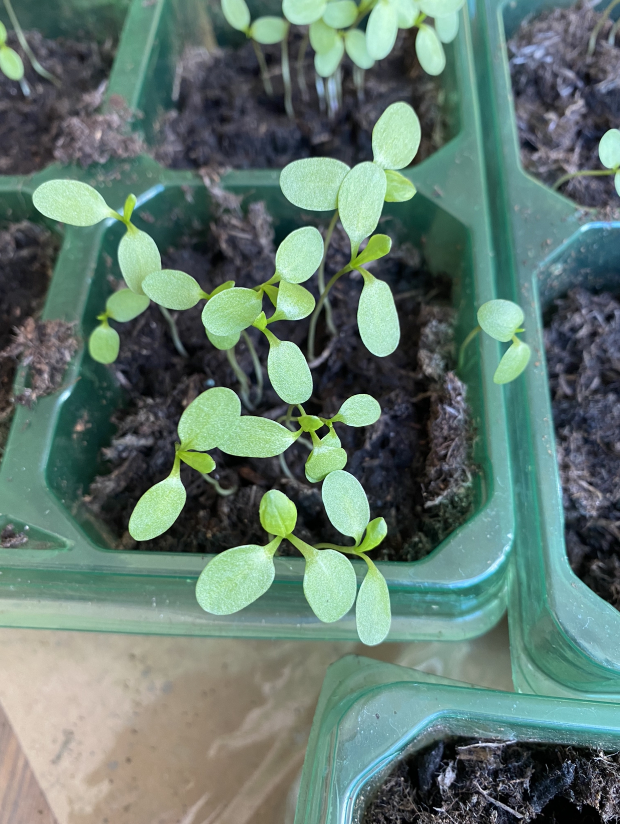 Time passed and the plants started looking more mature as if they were ready for outside planting… but going from a cosy indoor growing location to outdoor would be a big shock so I started taking the trays outdoors on my front steps to give them a chance to harden.