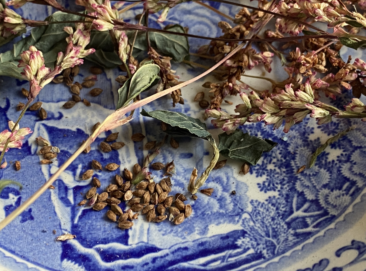 Japanese Indigo or Persicaria Tinctoria, originated from China and Vietnam and is an annual dye plant, part of the Buckwheat family and producing blue pigment (with a high count of Indican the precursor of Indigo). It is Frost tender and has a fast growth (16 weeks in my case from planting the seeds to first harvest of leaves loaded with pigment and ready to use).