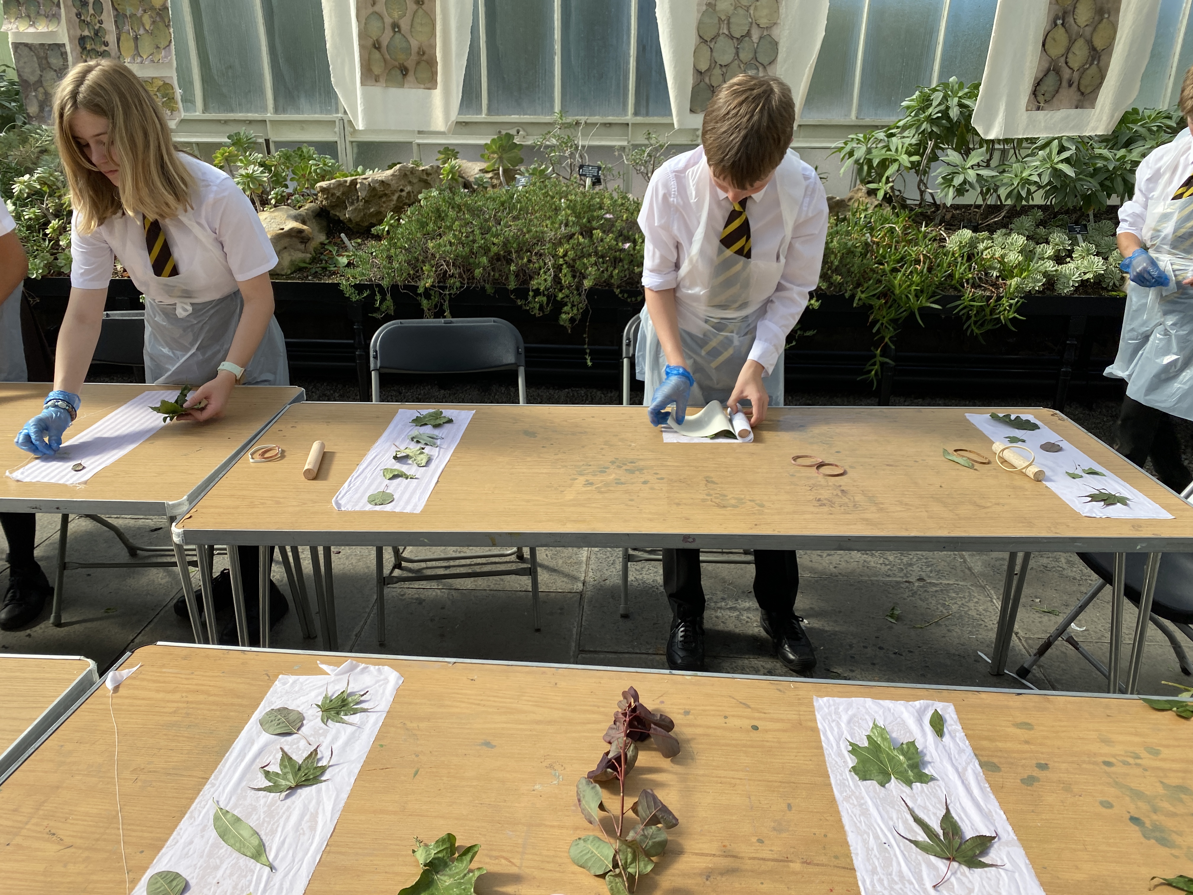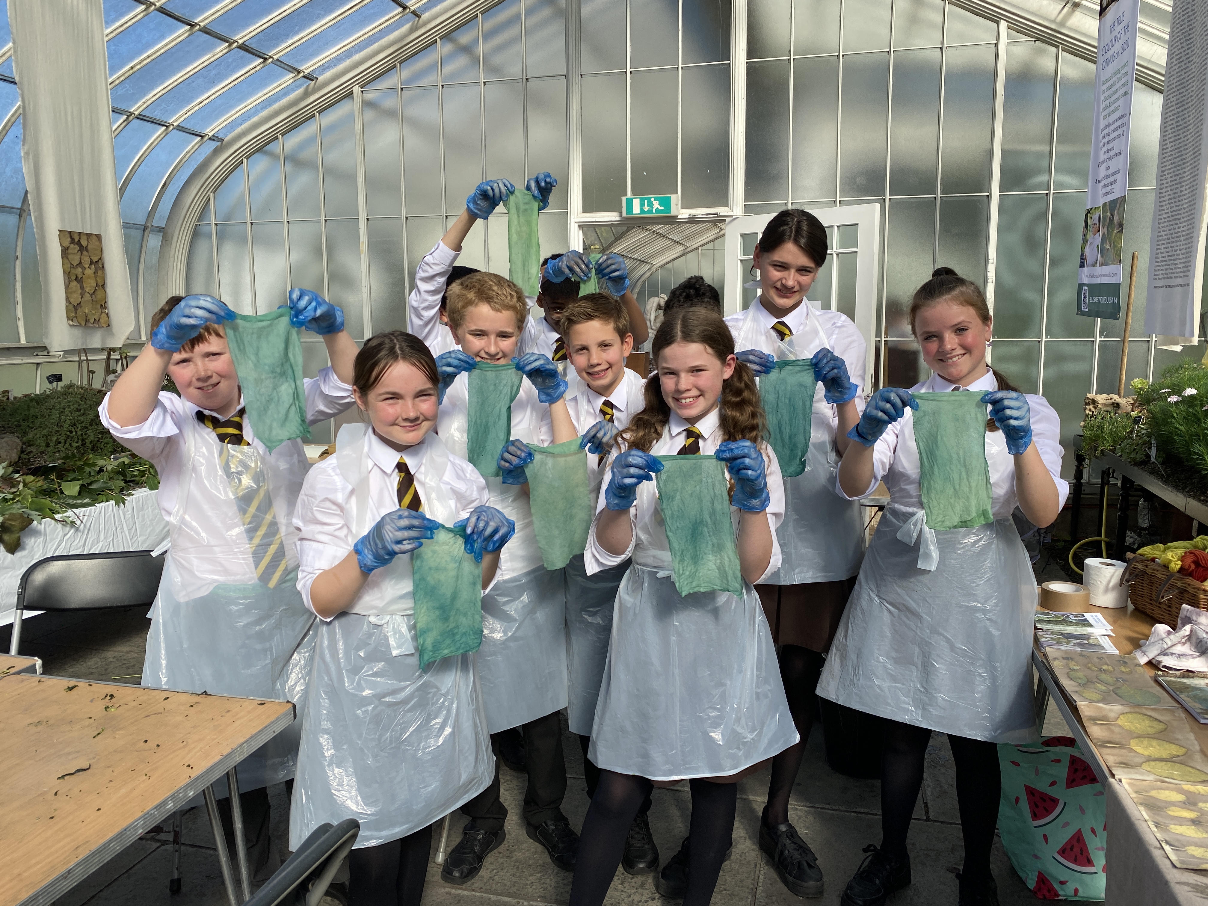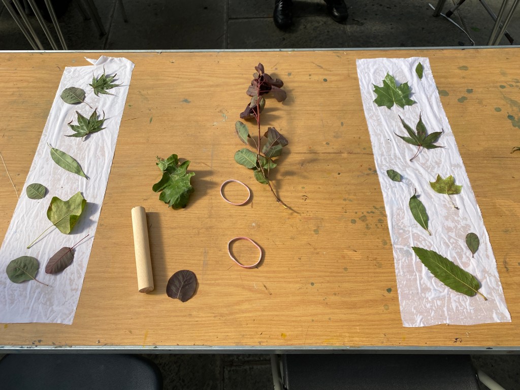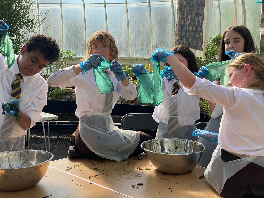 This week was a special one, quite a busy one in fact as well as hosting “The True Colour of the Cotinus” Exhibition at the Glasgow Botanical garden and a Cotinus printing masterclass I had the very great privilege to welcome the S1 pupils of a local school for a two days workshop in Botanical Printing and Natural dying. A whole 100 children and their teachers from Jordanhill School came by to learn about Eco techniques.