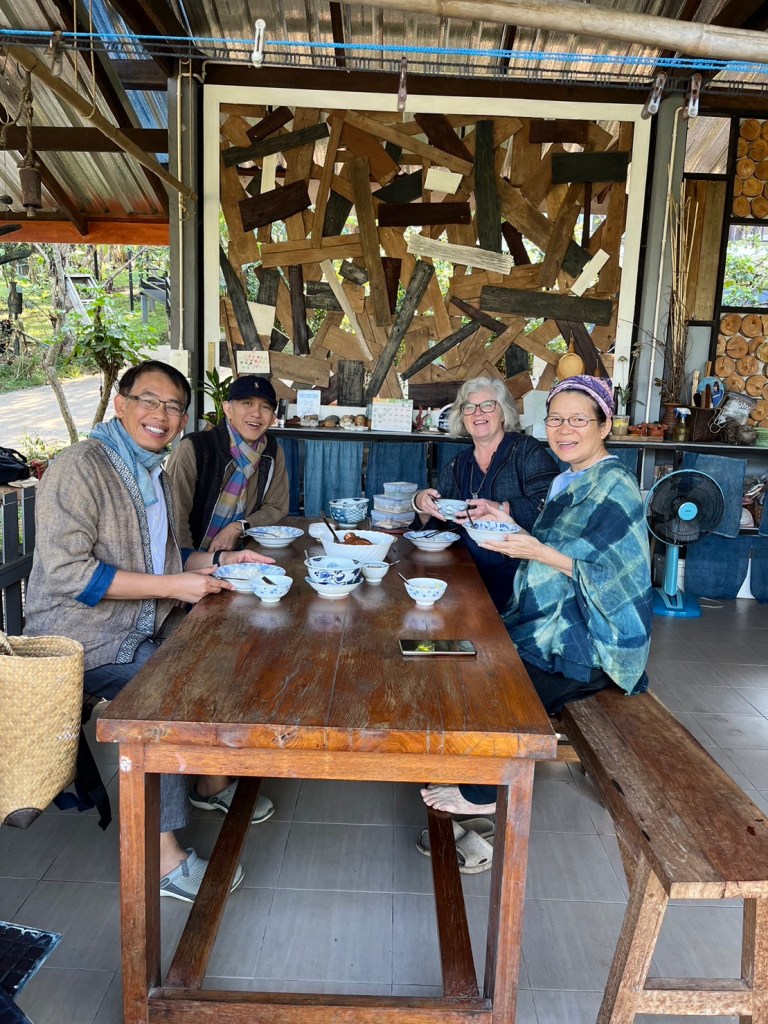 Oh and did I say that we had the most wonderful coffee in the cutest coffee shop in Chiang Dao? We had great meals, We visited the Organic Indigo farm in the making Kun Sak is setting up, We visited a coffee grower … and all this happened because we all love the Indigo dye…