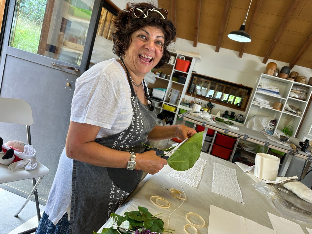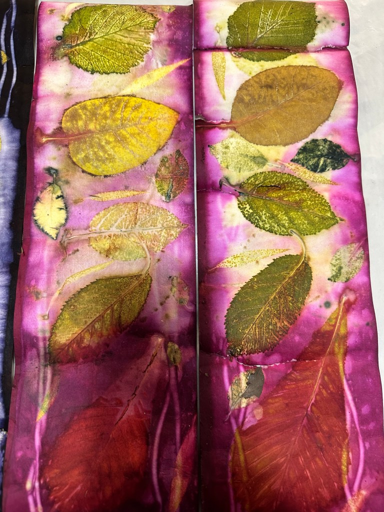 About me… I am Elisabeth Viguie Culshaw, I am a natural dyer and Botanical printer based in Glasgow in Scotland. I have been teaching and sharing my skills for a great many years. In time of Covid I have been teaching online and since we have reopened I still like to put people together for some good old creative time…