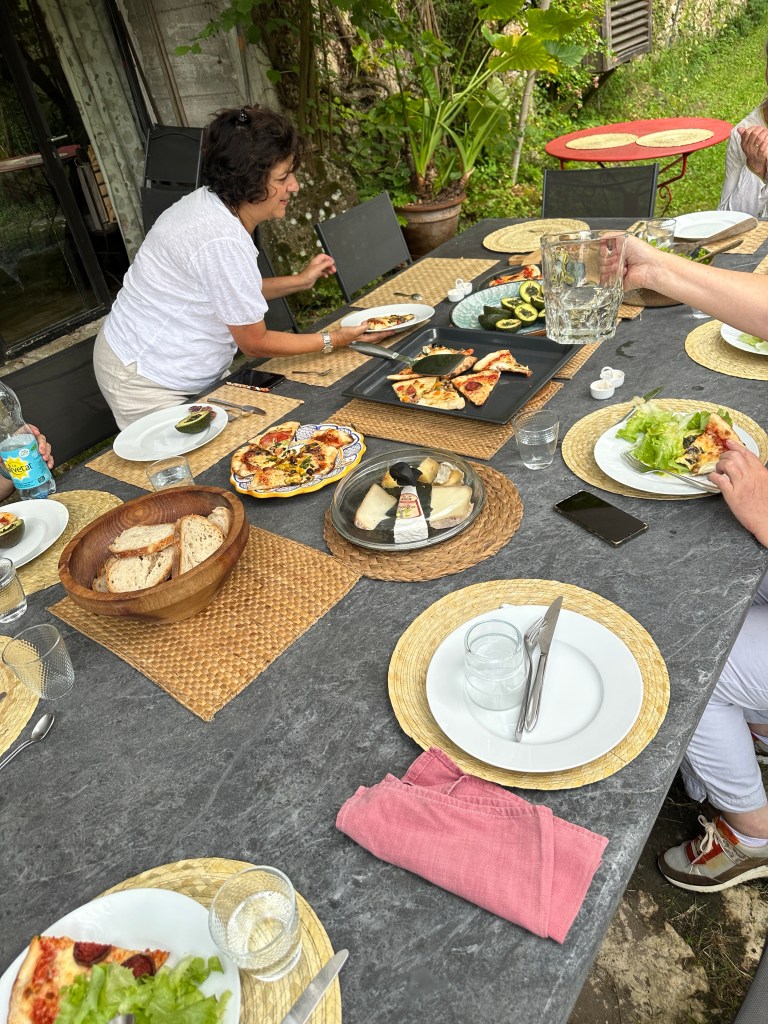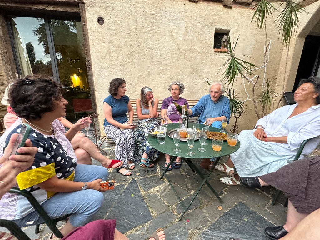 I am working on the principal of a creative “family” get together in the country side and will immerse ourself in the technique. We are so lucky to have found a lovely farmhouse and we share rooms there. Please be aware there are no private rooms but plenty of private spaces around the house. Meals are taken around the family table and are cooked from scratch, our host JF is a great chef.
