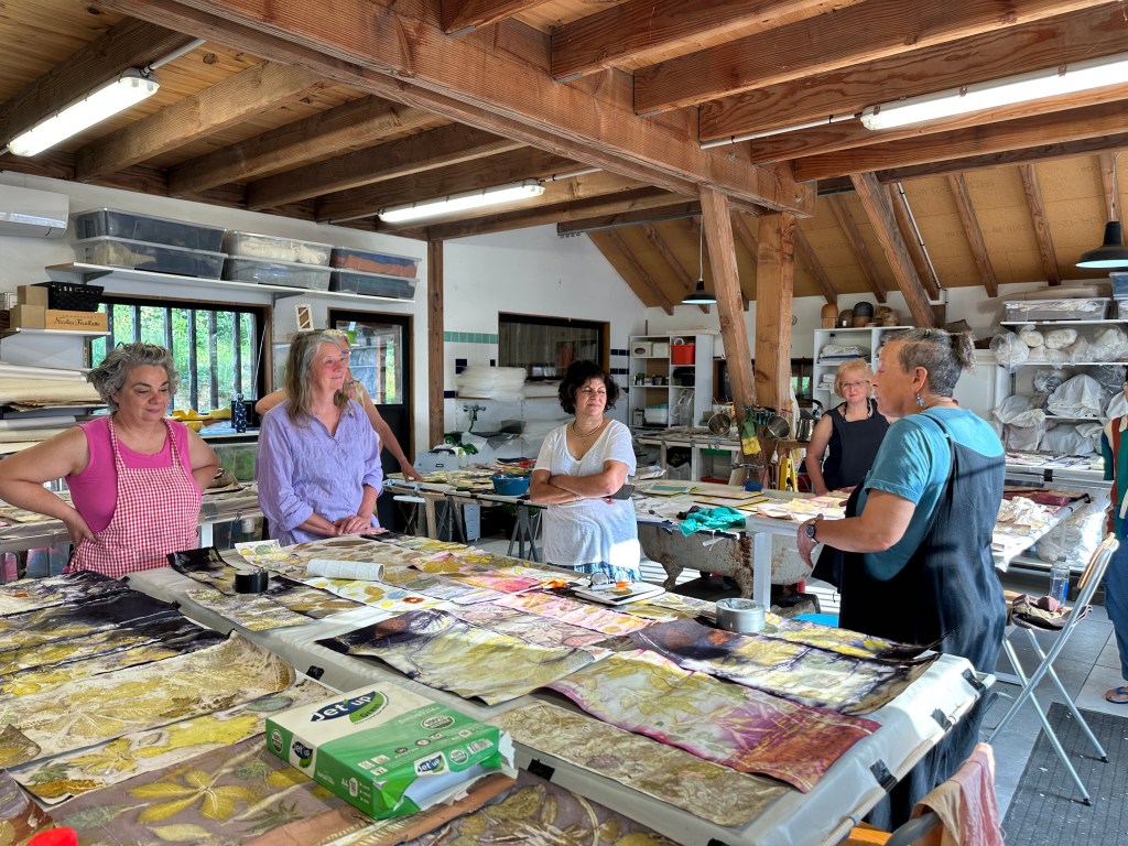 I created The French Retreat and offered it to my online participants in November 2022 to allow anyone who had been “meeting” online on zoom to spend a week in real life creating Botanical Printing on paper. It was such a success I decided to run it again in 2024 and add some techniques to it. After the event I brainstormed with the participants and took their advice for making it “perfect”. It was not long enough I added a day to it. We decided to opt for a more casual lunch time to allow everyone some “me space”, we will also offer a visit to a stunning local artist village during the day off.