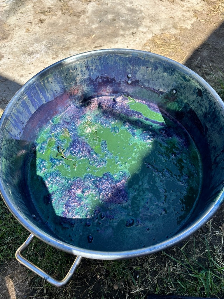 The first was a gorgeous large Indigo vat with leaves floating on the surface that produced vibrant blues like those from the Sukumo vats I used in Japan.