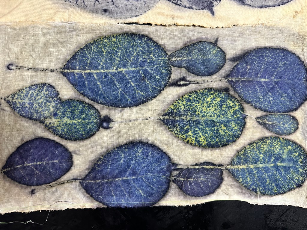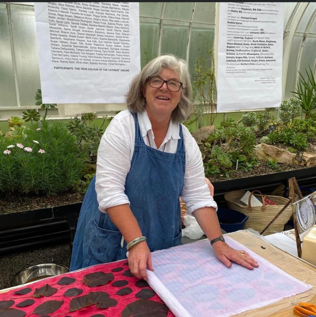 She started working with Botanical printing in 2015 after being inspired by India Flint the Australian artist. During the Covid crisis she initiated “The True Colour of the Cotinus” a global online botanical printing project using the Cotinus plant leaves for blue print. She has gathered a large global community of eco artists around her digital studio.