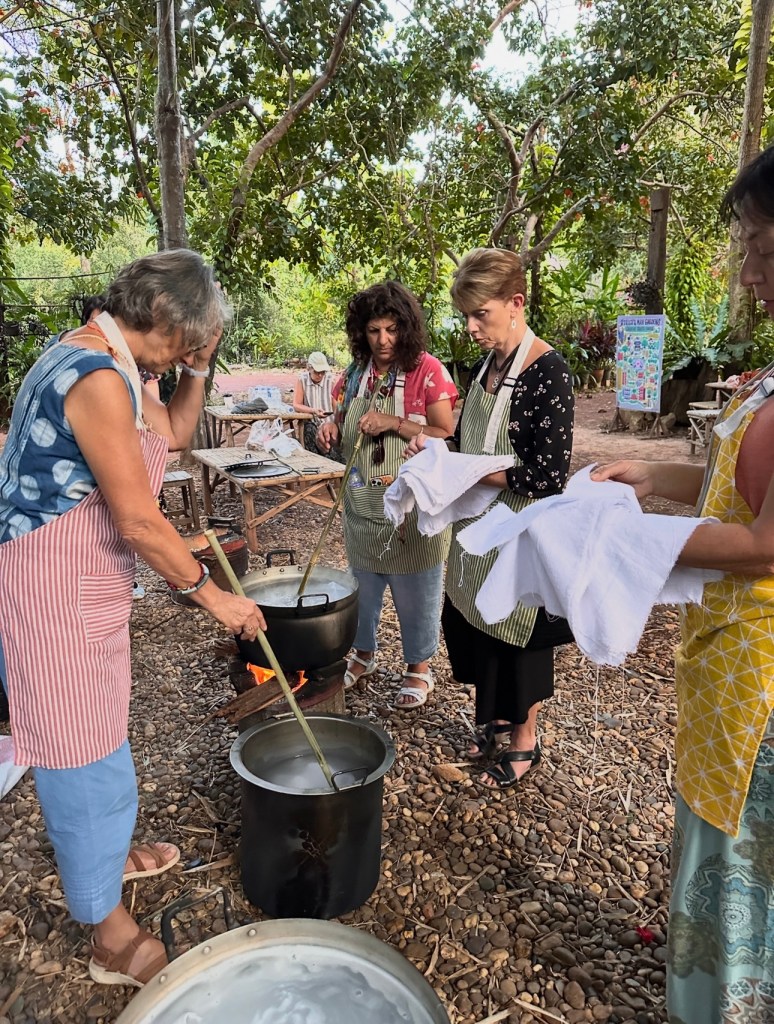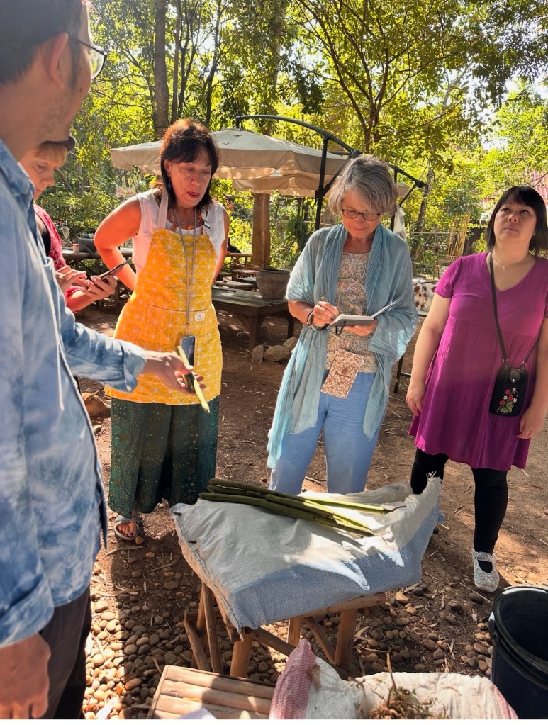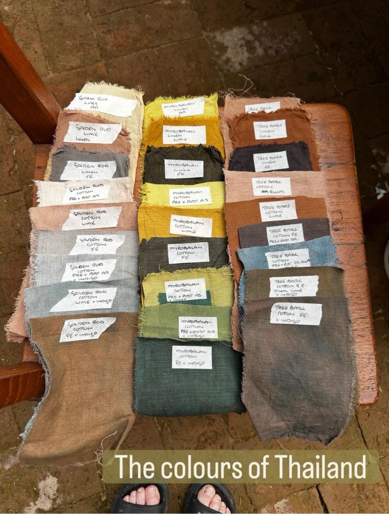 Last November during my “Colours of Thailand” retreat I took a small group of keen textile artists to my favorite places to experience Sustainable Natural dyeing. We visited Sakhon Nakon and spent 4 days in Mann Craft garden working with plants to create a Natural colour pallet.