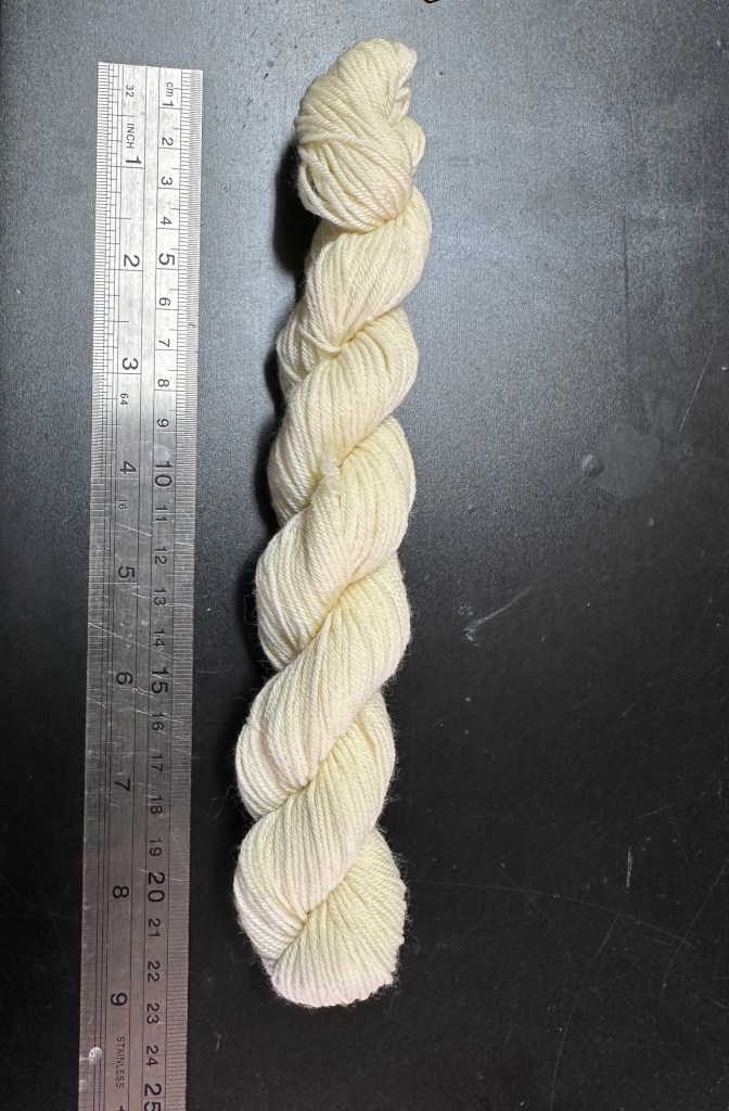 The skein should be around 25 cm long when double twisted. It should weight between 20 and 40 gr.
