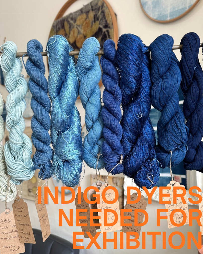 “Shades of blue” is my solo exhibition about Indigo in Glasgow Scotland in September 2026. It will last 5 weeks during which I will show processes, plants, dyes and art work and the shades of blue they give.