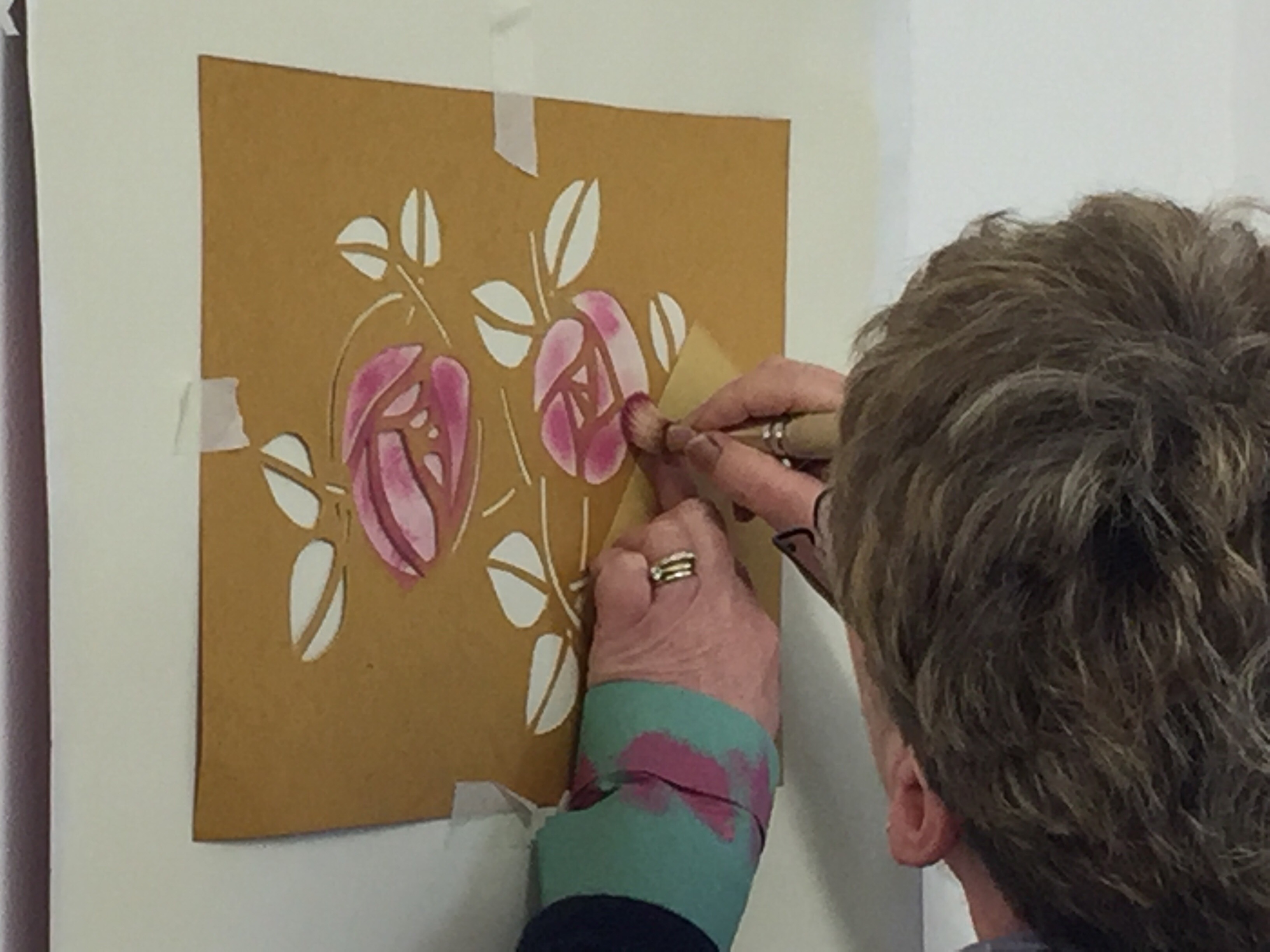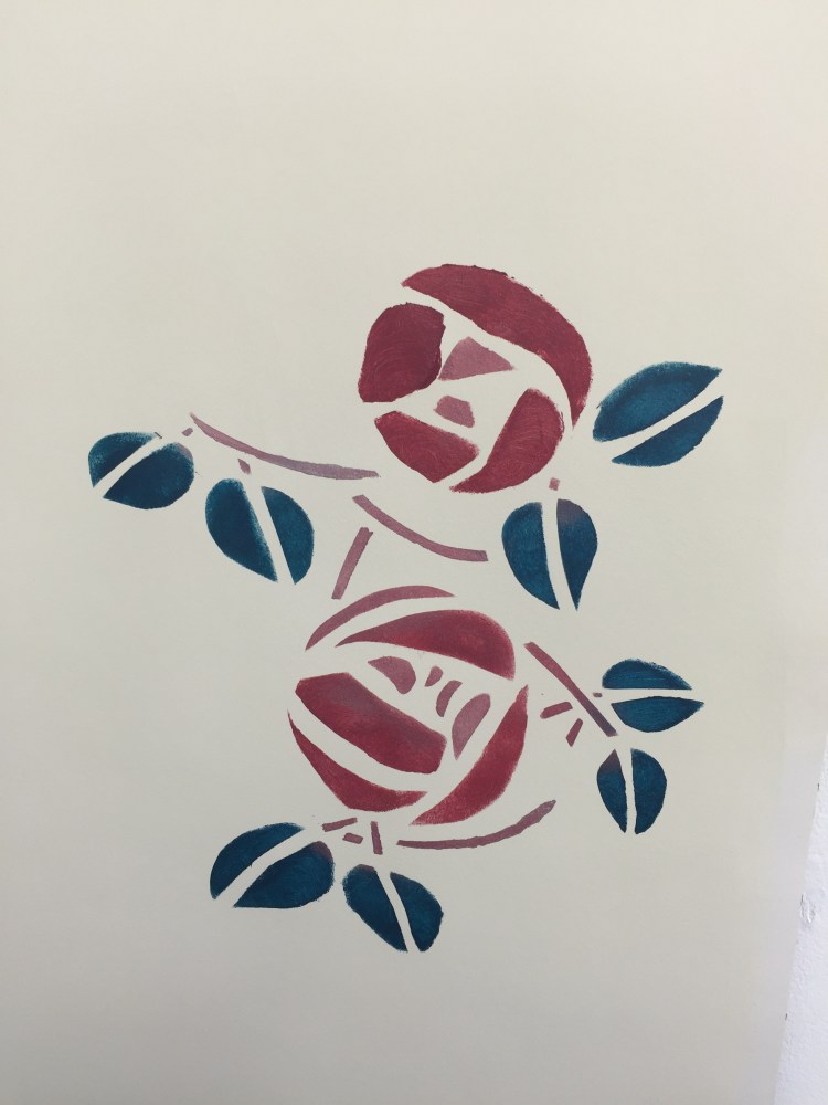I am very emotional this month as I will be going back to The Mackintosh church during the West end Festival to welcome a few people who have gathered enough courage to have a go. I have no worries though I know they will achieve much after the first initial try. It will be fun and very creative. We will enjoy this great venue and we will be stencilling many roses.