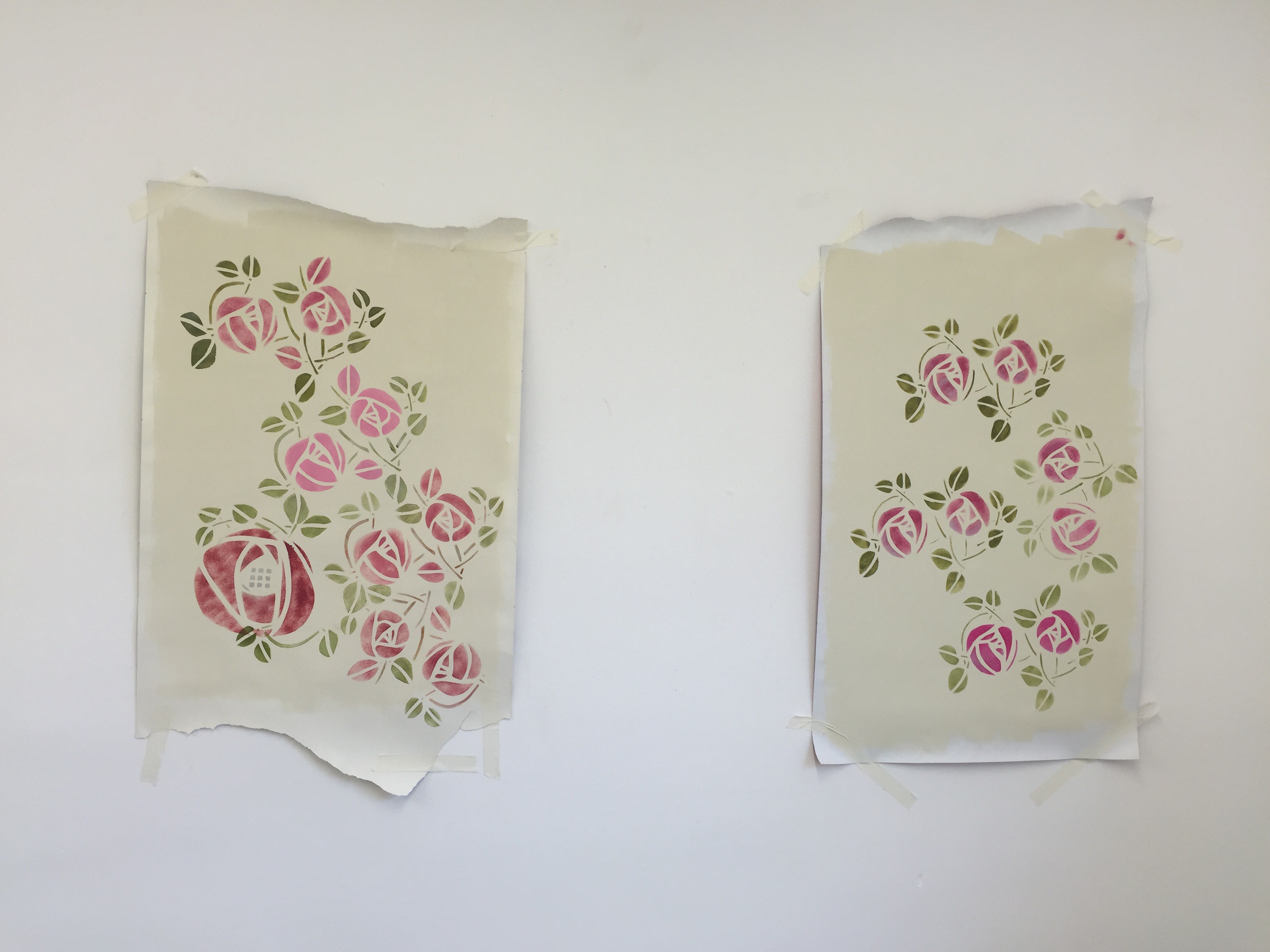 I have stencilled houses and churches … Played my part in exhibitions with many museums I even stencilled my loved roses on the fire place of The House for an Art Lover in Glasgow.